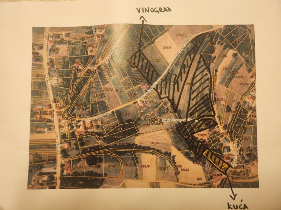 Od zemljišta prodajemo njive, voćnjak koji se nadovezuje na dvorište i dva zapuštena vinograda. To sve ulazi u cijenu. Kuća je legalna građena prije 1968.