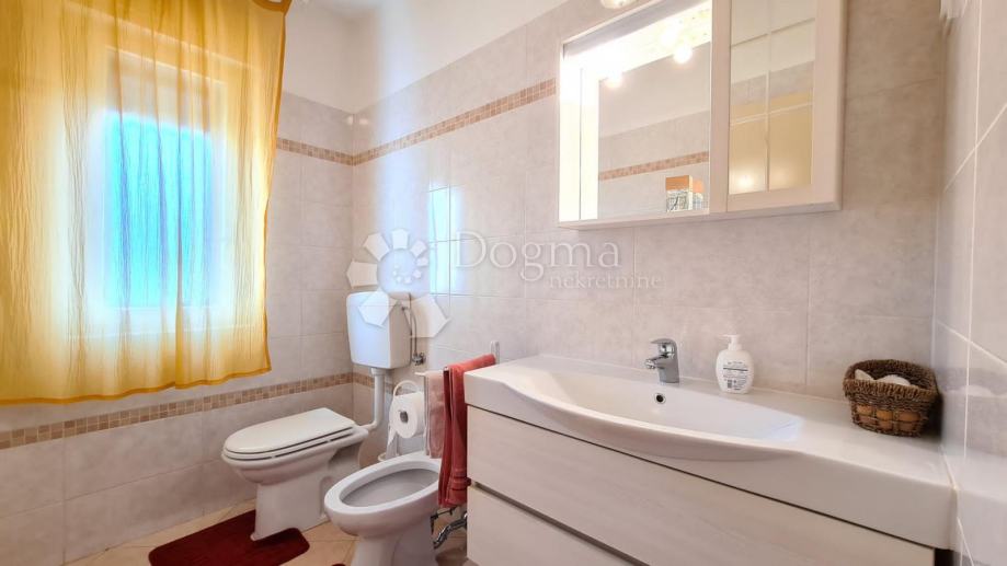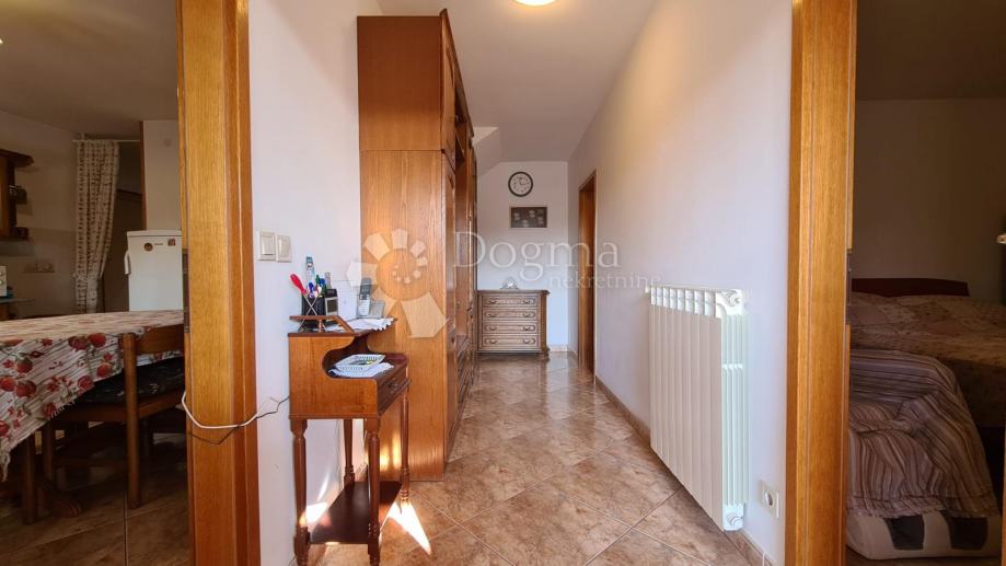 Kuća se proteže kroz dvije etaže i ima uređene 4 spavaće sobe, jedno kupatilo i jedan WC, kuhinju i prostor za druženje s kaminom. Iznad konobe se nalazi još jedan veći neuređeni prostor. Kući pripada okućnica veličine 310 m², trenutno djelomično namijenjena za vrt.