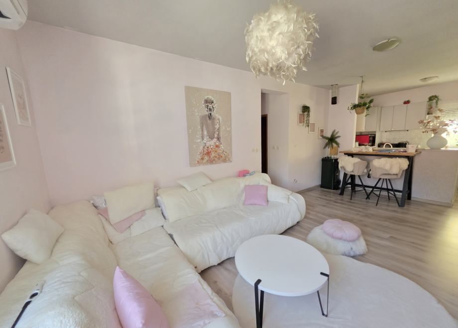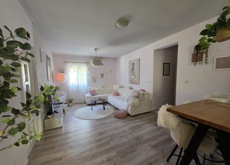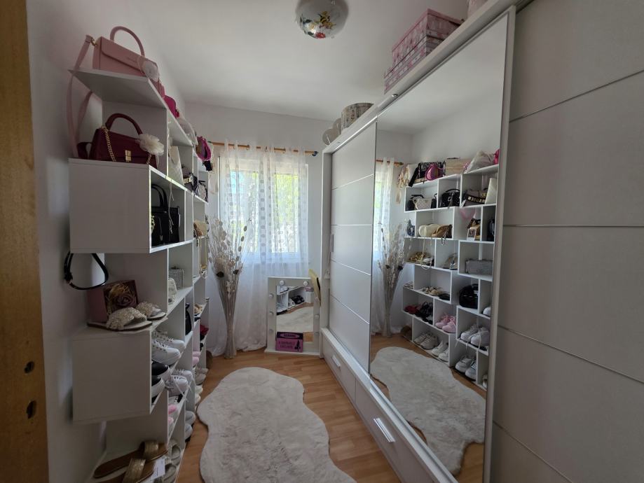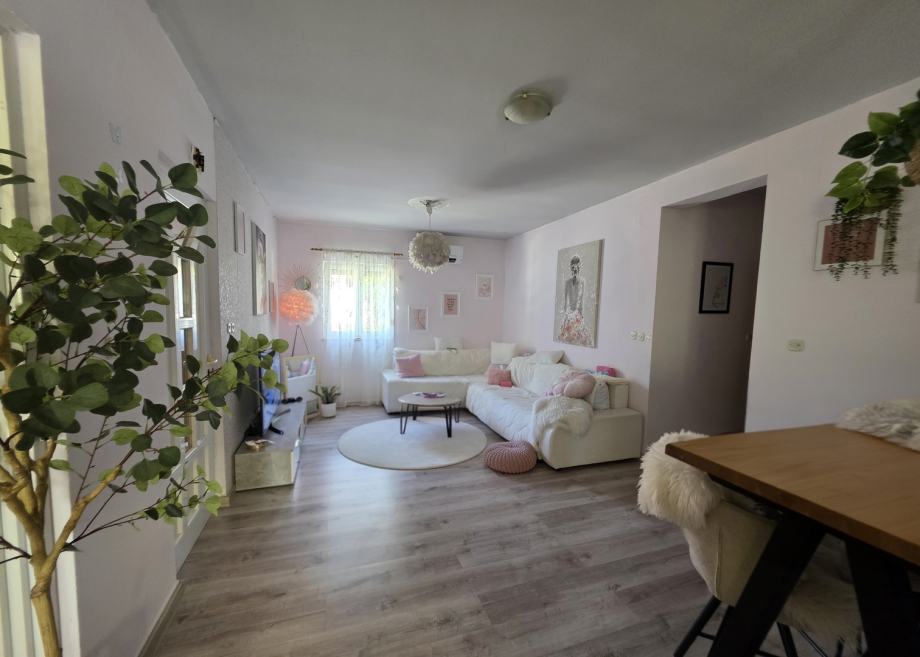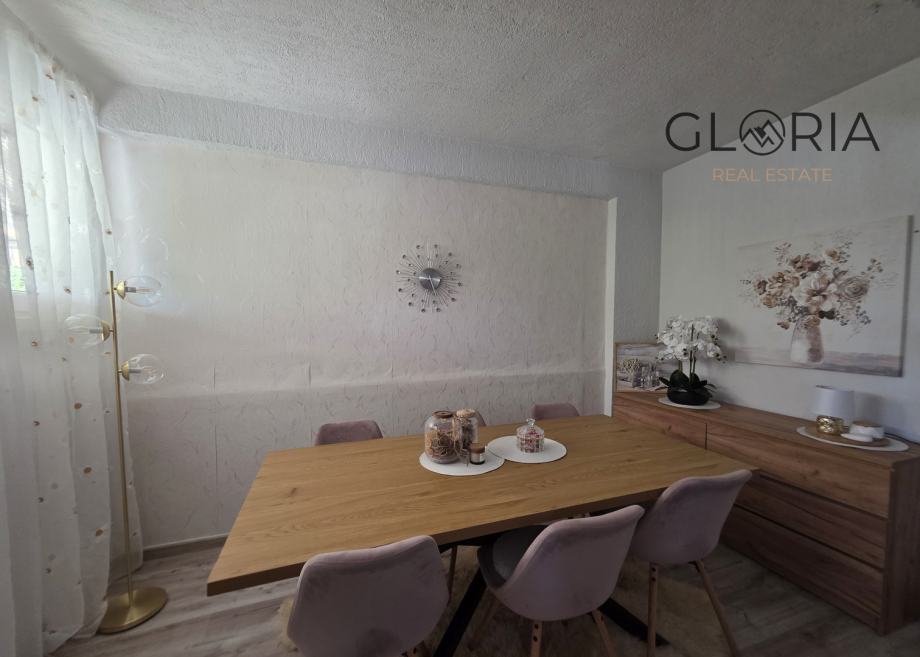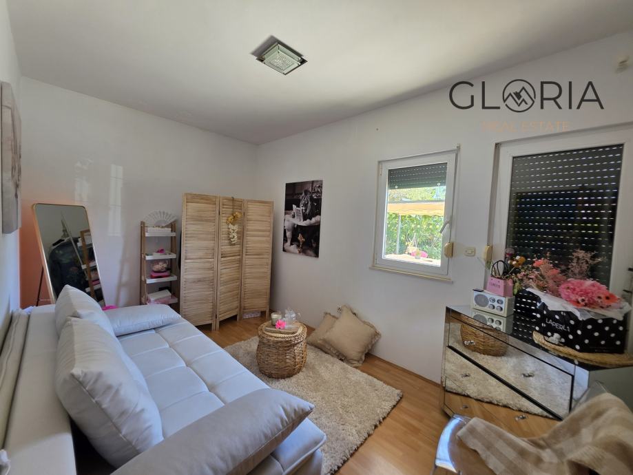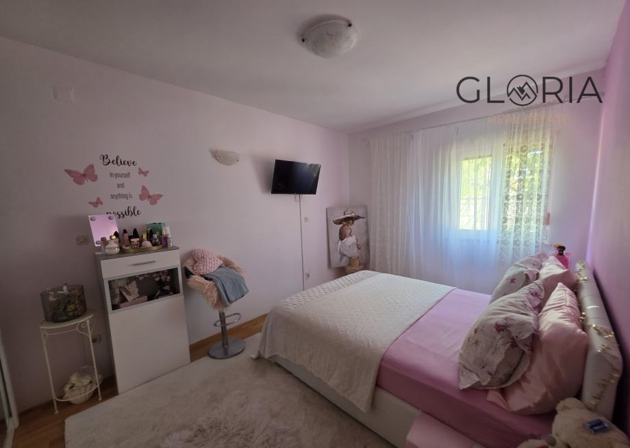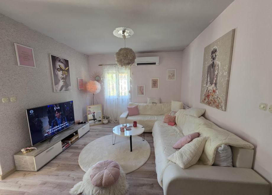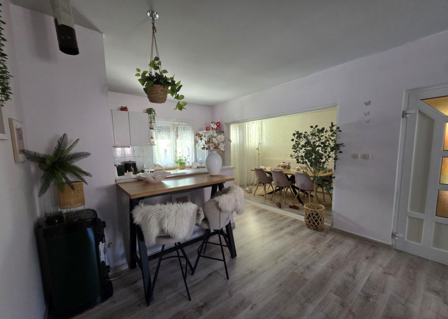Proteže se na ukupno 2 stambene etaže od kojih je prizemlje u odličnom stanju i djelomično namješteno, a 1. kat (zadnja etaža) je u fazi roh bau sa postavljenom stolarijom.