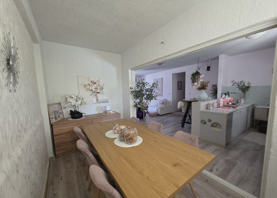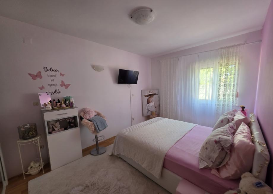 Ova prostrana nekretnina nudi ukupno dva komforna četverosobna stana, što je čini izvrsnim izborom za veće obitelji ili one koji traže dodatni prostor za goste i radne aktivnosti.
