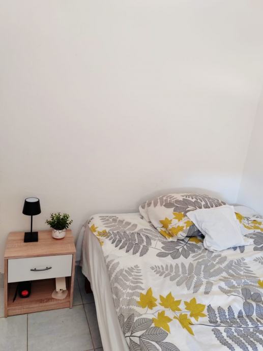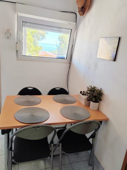 Nekretnina se sastoji od kuhinje,blagovaonice,dnevnog boravka,dvije spavaće sobe,kupaonice,vanjske natkrivene terase 15 m2 s pogledom na more i uređeno dvorište.