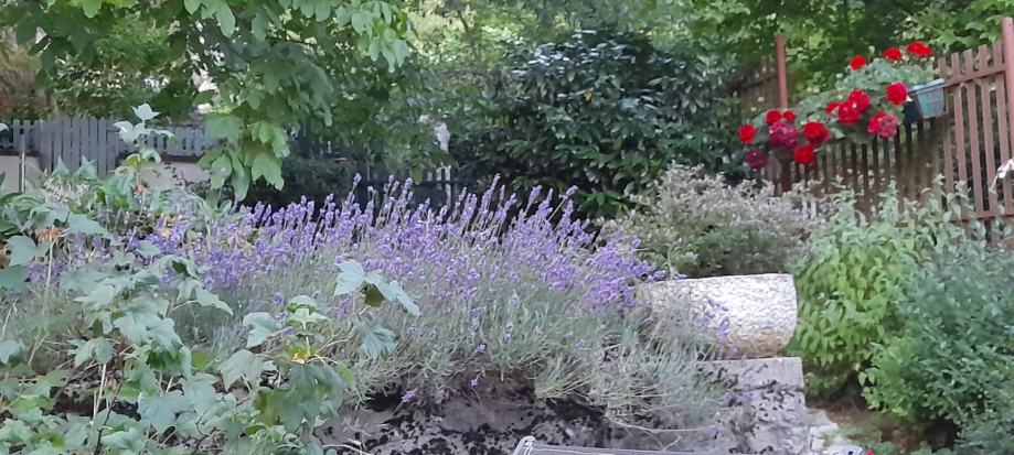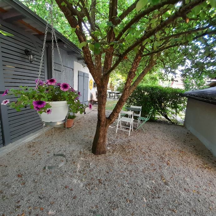 Udaljena od ceste, oaza mira i zelenila, u stražnjem vrtu izgrađena vrtna kućica koja se sastoji od spremišta za alat, spremišta za strojeve za održavanje vrta, spremišta za bicikle i drva za roštilj te još jednog spremišta za razne namjene.