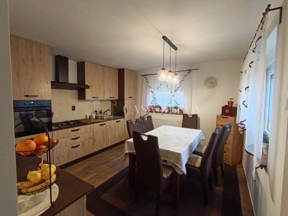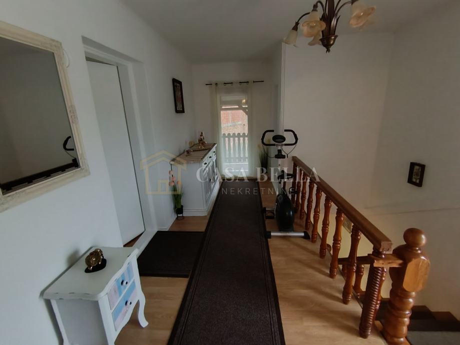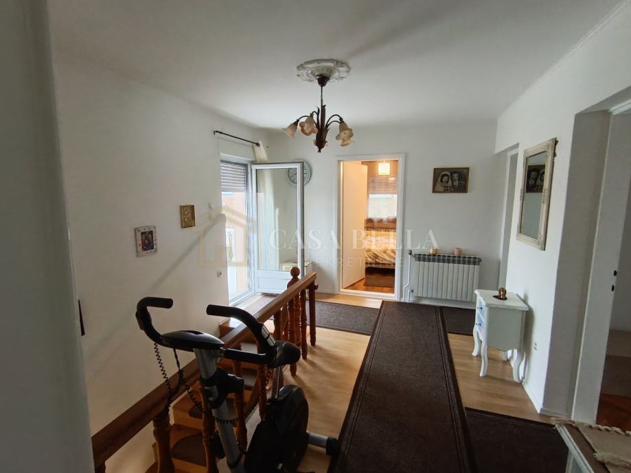 Sveukupno broji 4 spavaće sobe, dnevni boravak, dva hodnika, dvije kupaonice, kuhinju sa blagovaonicom, unutarnje stepenice, tavanski dio i veliku terasu na katu od koje se pruža jedan očaravajući pogled posebice i ljetnim mjesecima.