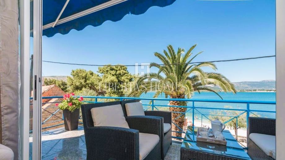 Predstavljamo samostojeću kuću smještenu u prvom redu do mora, uz plažu, nedaleko od Trogira. Ova nekretnina idealna je kako za miran obiteljski život, tako i za turistički najam, s obzirom na već uhodan posao iznajmljivanja.