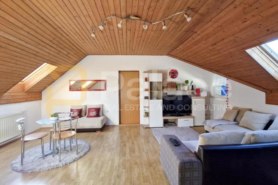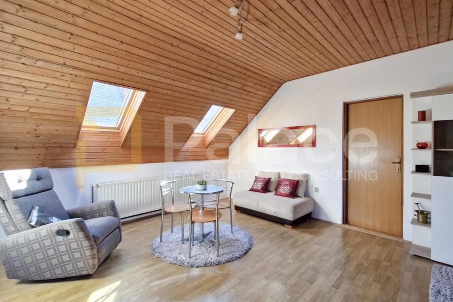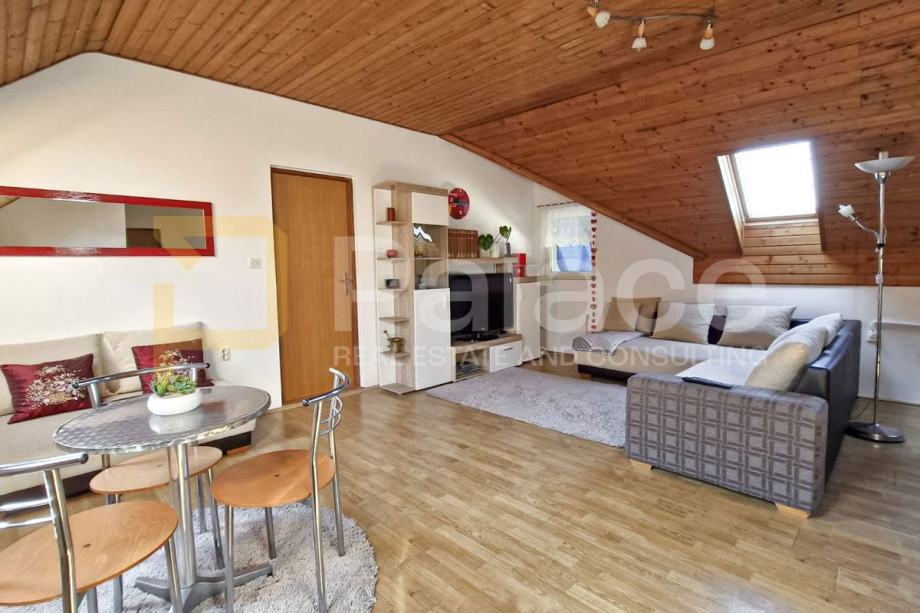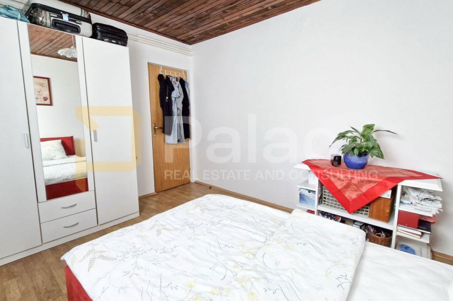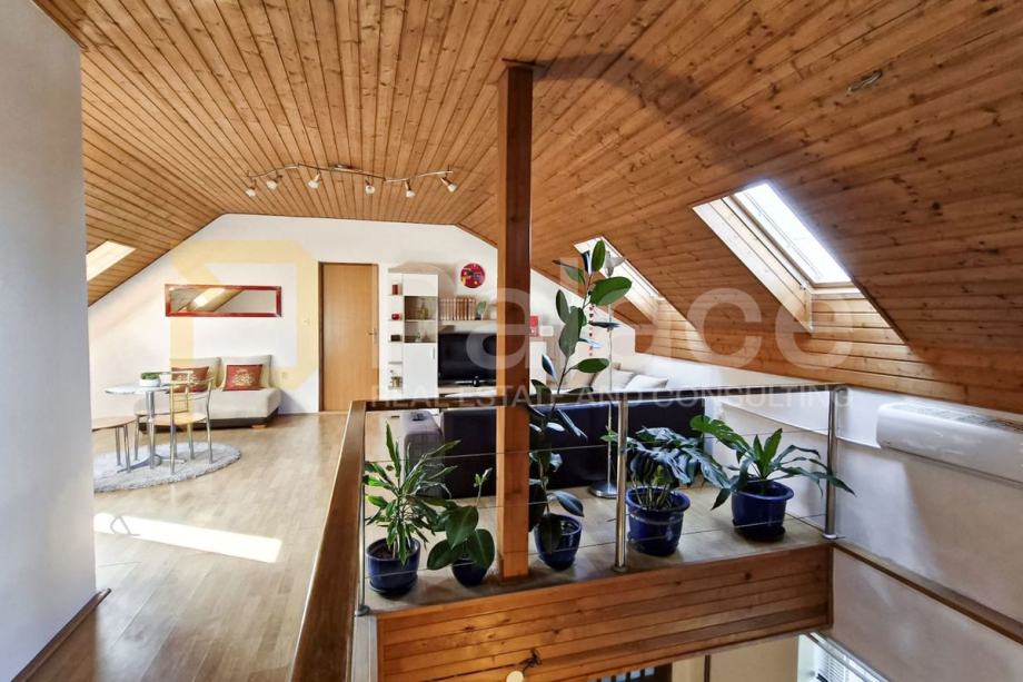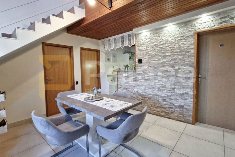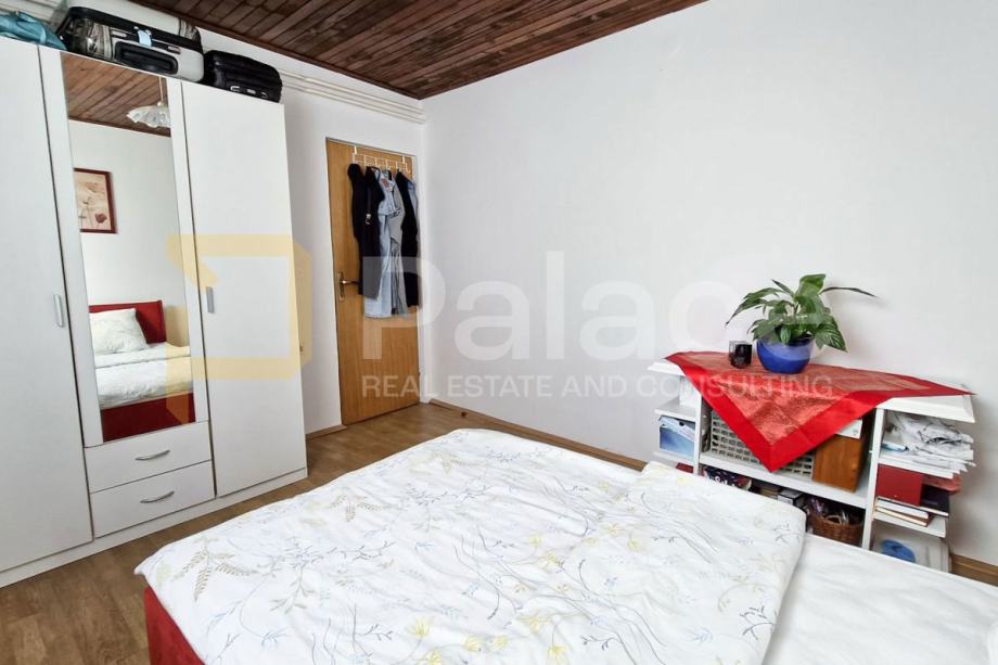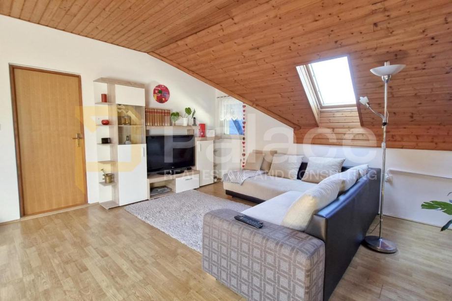 Potkrovlje se sastoji od galerije (koja je trenutno uređena kao dnevni boravak), velike spavaće sobe, kupaonice i neuređenog dijela (cca 60 m2) s balkonom.U dvorištu su još i sjenica, roštilj, zidana ostava, betonirana nadstrešnica (garaža) te bušeni bunar.