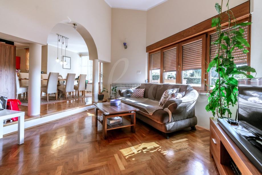 Prodaje se samostojeća kuća u Peroju s pogledom na more ukupne površine 330 m2 raspoređene na tri etaže. U prizemlju kuće je komforan stan od 128 m2 sa tri spavaće sobe, svaka sa terasom, dnevni boravak i kuhinja s blagavaonom, dvije kupaone i terasa. Unutarnjim stepeništem se ide na mansardu od 92 m2 koja ima spavaću sobu sa dvije terase, sa pogledom na more i otočje Brijuni, dnevni boravak sa kuhinjom, kupaonu i hodnik. U suterenu je konoba od 85 m2 sa dvije radne prostorije i kotlovnicom. Uz kuću se nalazi mali apartman od 36 m2 koji ima spavaću sobu, kuhinju, kupaonu i lođu. Okućnica je lijepo uređena zelenilom i dijelom popločena .Udaljenost od mora i uređene plaže 550 m. .