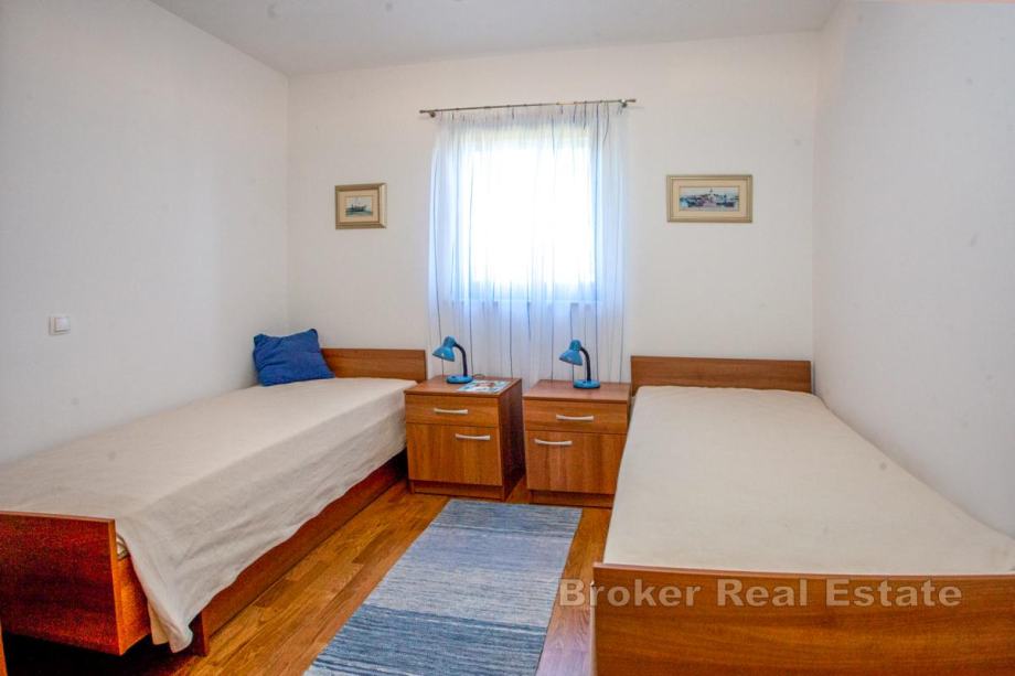 Vanjske stepenice vode na kat gdje se nalazi stan s dvije spavaće sobe, kupaonicom, kuhinjom, dnevnim prostorom i blagovaonicom.