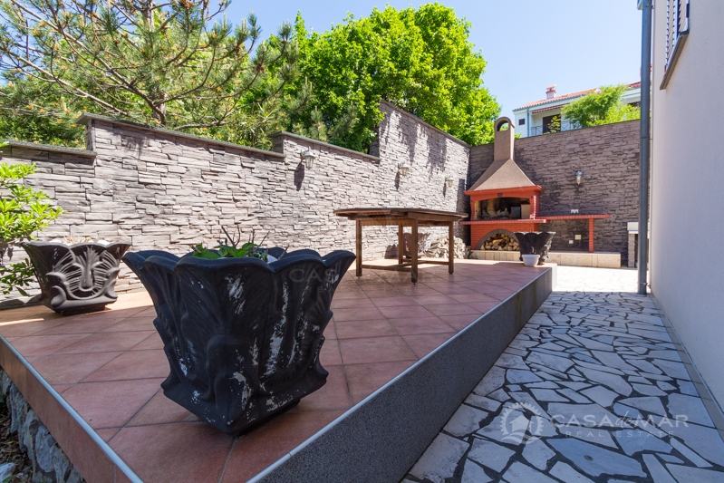 Ispred kuće je velika sunčana terasa koja vodi do dijela koji je pripremljen za montažu hidromasažnog bazena, kao i dijela gdje se nalazi vrtni gril sa velikim blagovaonskim stolom.