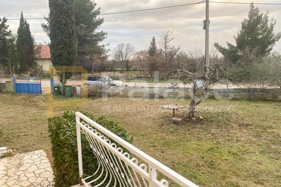 Kuća je položena na lijepoj lokaciji uz prometnicu, a ima veliku i ravnu okućnicu s vrtom i voćkama.