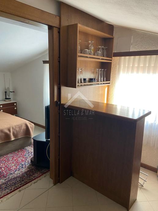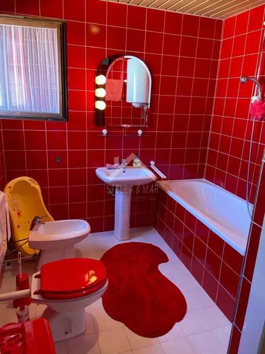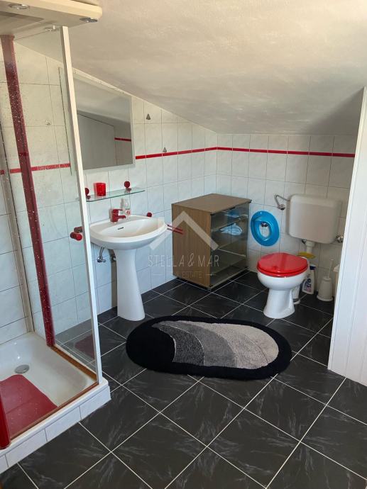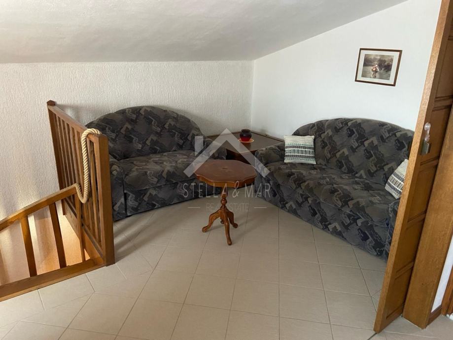 Unutarnje stepenice vode na kat gdje se nalaze dvije spavaće sobe, kupaona i prostrana terasa. Nadalje stepenice vode u potkrovlje gdje se nalazi manje predsoblje, dvije spavaće sobe i kupaona.