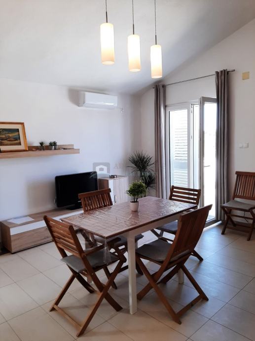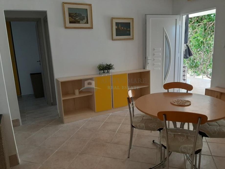 Apartman u prizemlju se sastoji od dvije spavaće sobe, kupaonice, kuhinje s dnevnim boravkom, terase te izlaza na bazen.