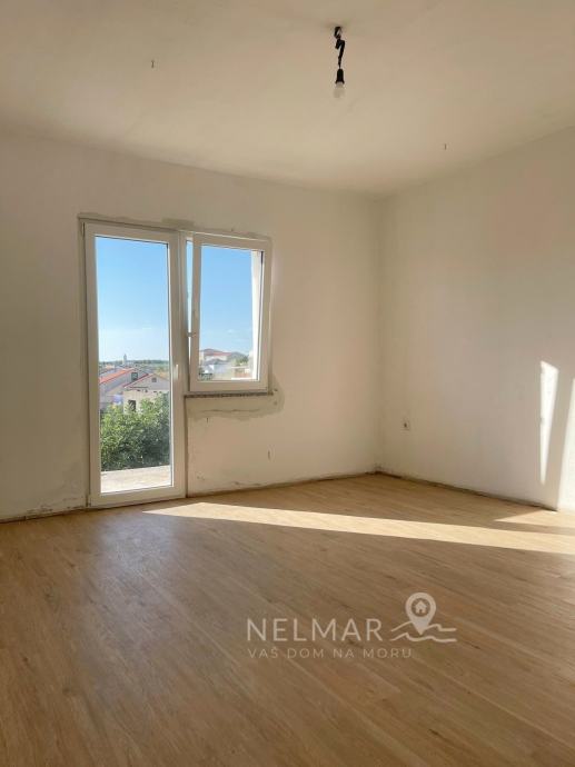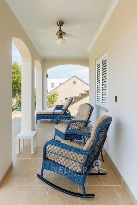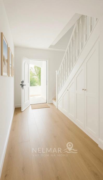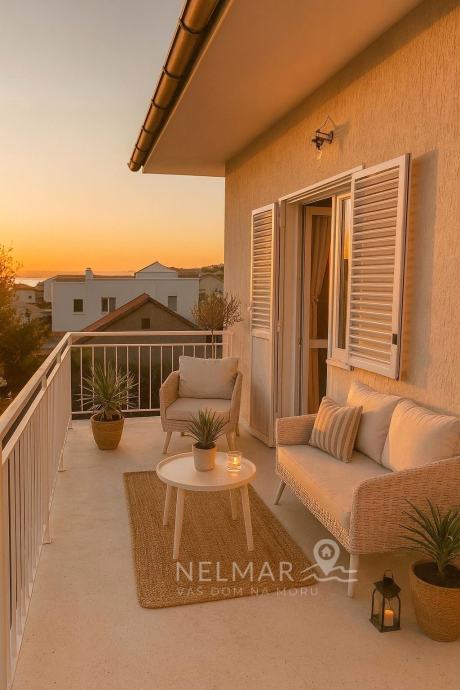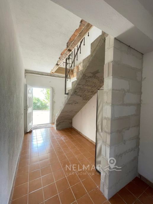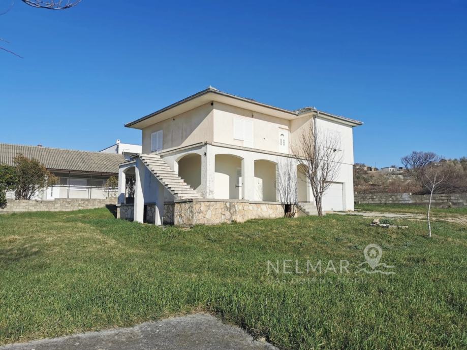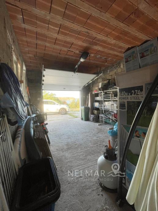 Prodaje se samostojeća obiteljska kuća sa dva odvojena stana/apartmana i garažom. Idealna za obitelj, smještena na mirnoj lokaciji sa koje se pruža otvoren pogled na more, udaljena tek nepunih 150 m od šljunkovite uređene plaže. Kuća posjeduje uporabnu i građevinsku dozvolu te posjeduje gradsku vodu, struju i ugrađenu septičku jamu; postavljena je nova PVC stolarija s ALU griljama.
