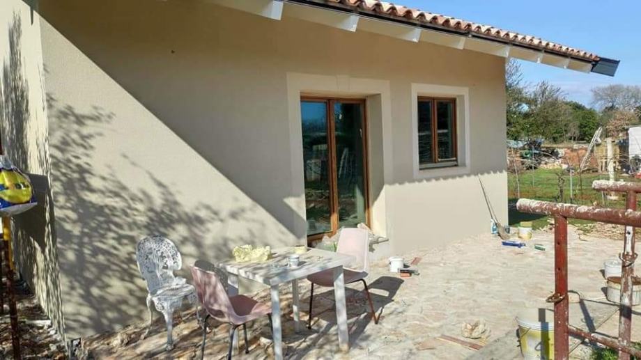 Prodajemo kućicu u mjestu Šišan u Istri,prizemnica s potkrovljem na parceli od 860 m2. Kuća je legalizirana,ima struju(preko panela)za priključak postoji predugovor koji treba uplatiti, ima vodu,žbuku,podove,vrata...Parcela je kvadratnog oblika,ograđena i ravna te na parceli ima maslina ,voćki...Okolis treba urediti kao i samu kuću dovršiti.Izgradnja kuće započela je 2011 godine Idealna prilika za neku mladu obitelj ili za bavljenjem turizmom...