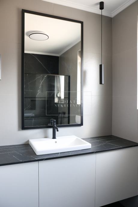Okućnica veličine 150 m² uključuje prekrasan vanjski bazen i uređeno dvorište s roštiljem, savršeno za opuštanje na otvorenom i uživanje u privatnosti. Nekretnina također dolazi s dva parkirna mjesta, što je dodatna praktičnost.