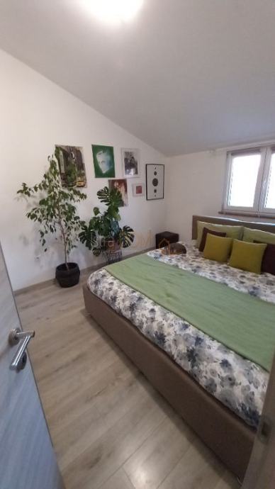 Na gornjoj etaži smještena su dva stana. Prvi stan ima površinu 61,21 m², a sastoji se od spavaće sobe, dječje sobe, dnevnog boravka, kuhinje, kupaonice i natkrivenog balkona od 6,25 m². Drugi stan ima površinu 45,91 m², s hodnikom, kupaonicom, spavaćom sobom, kuhinjom, dnevnim boravkom i natkrivenim balkonom površine 3,81 m².