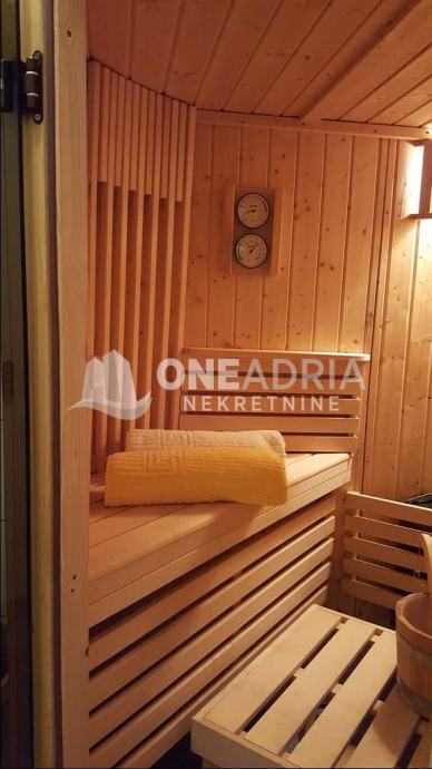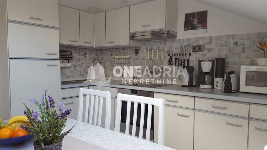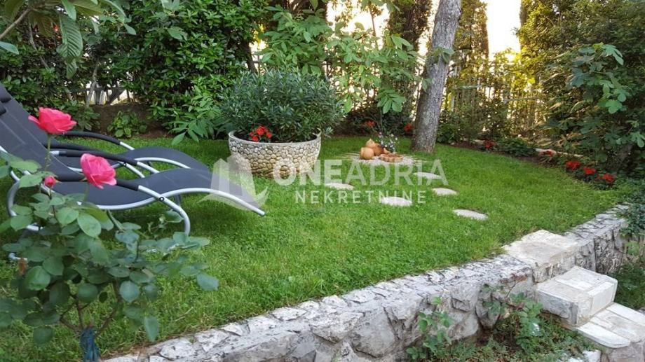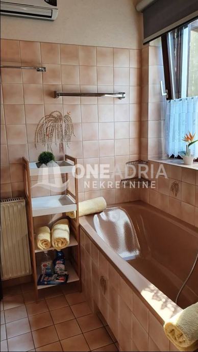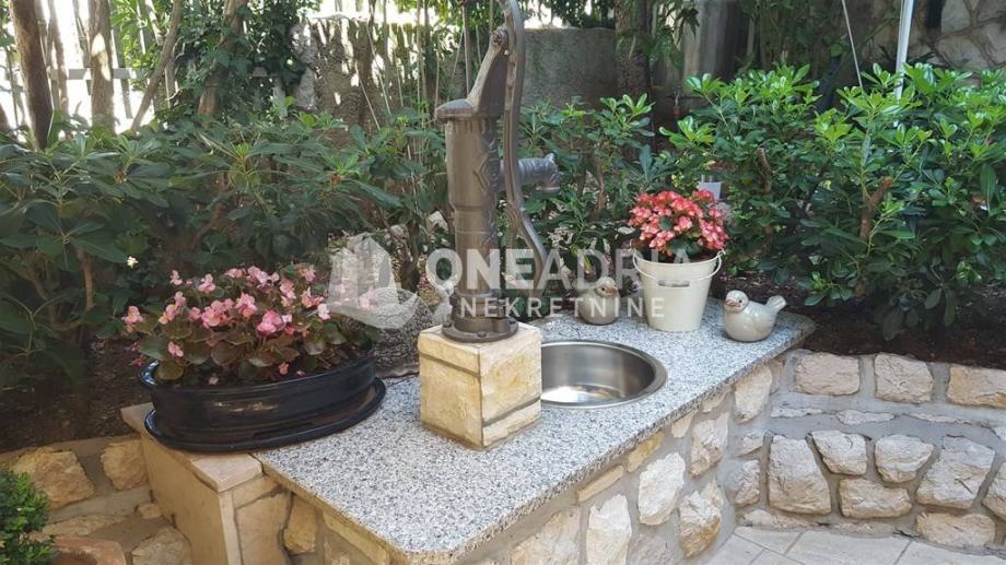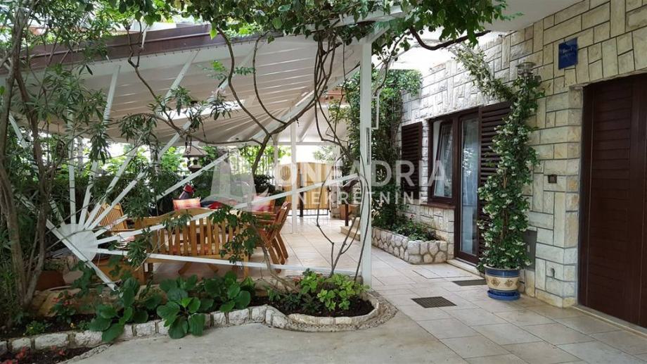 Samostojeća kuća na mirnoj lokaciji samo 200m od mora i plaža, sastoji se od tri apartmana kompletno namještena i uređena, i podrumskih prostorija dvije veš kupaone, saune i kotlovnice sa grijanjem na ulje, spremišta i odložnih prostora!!
