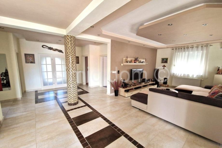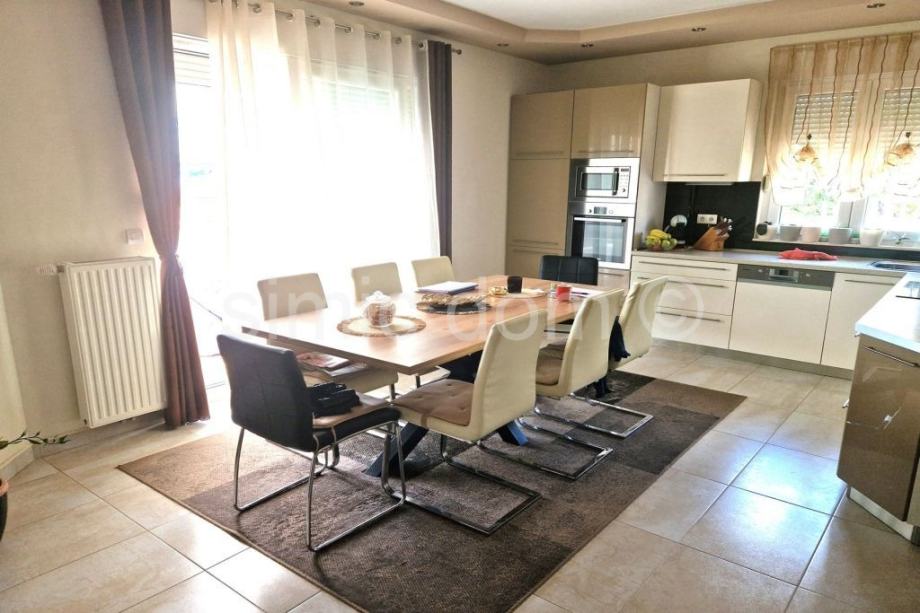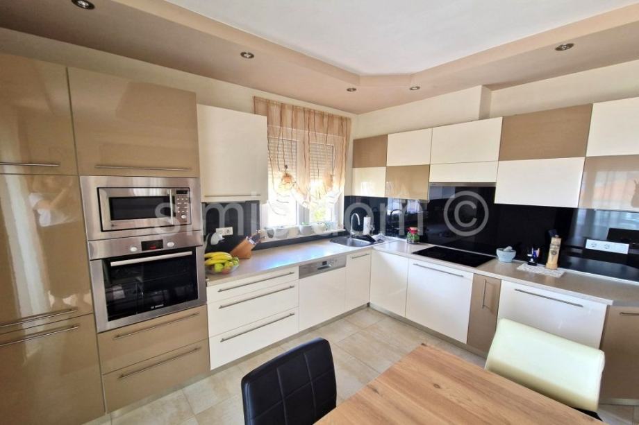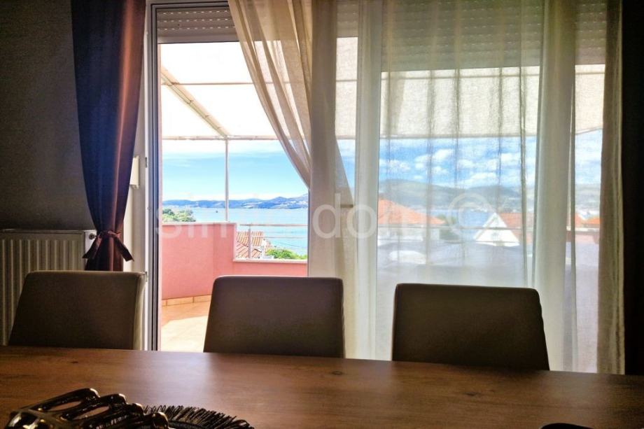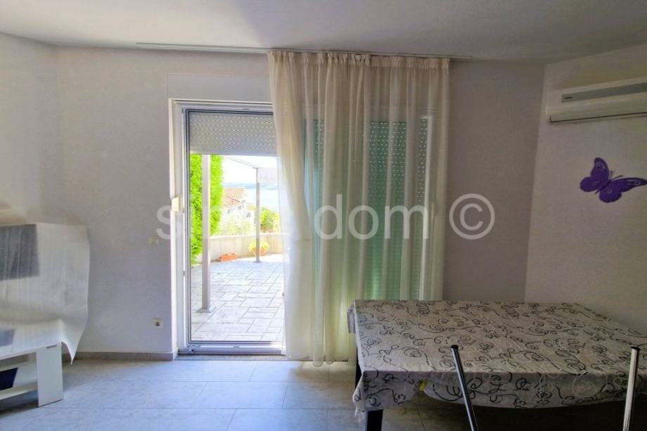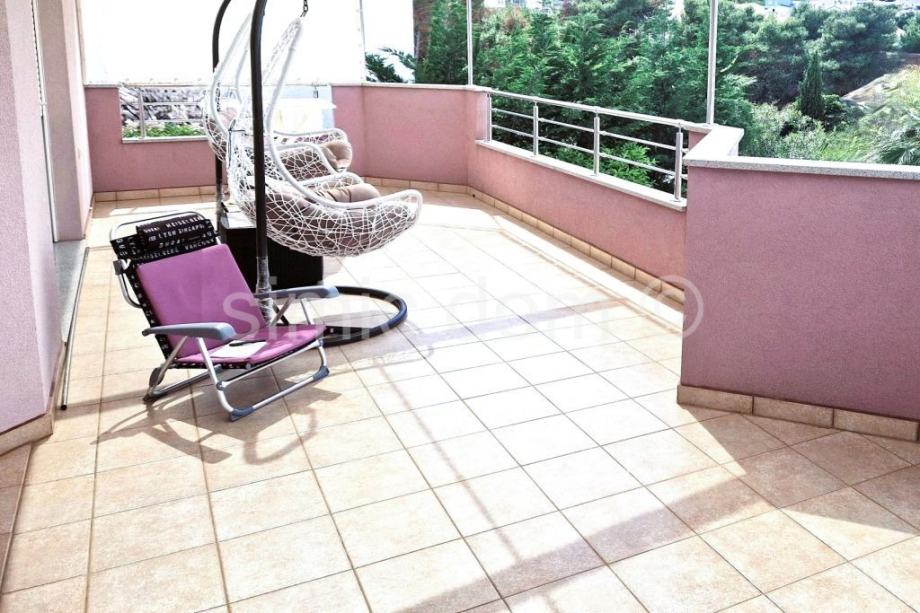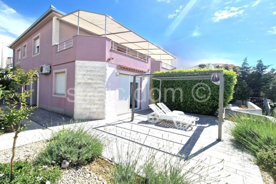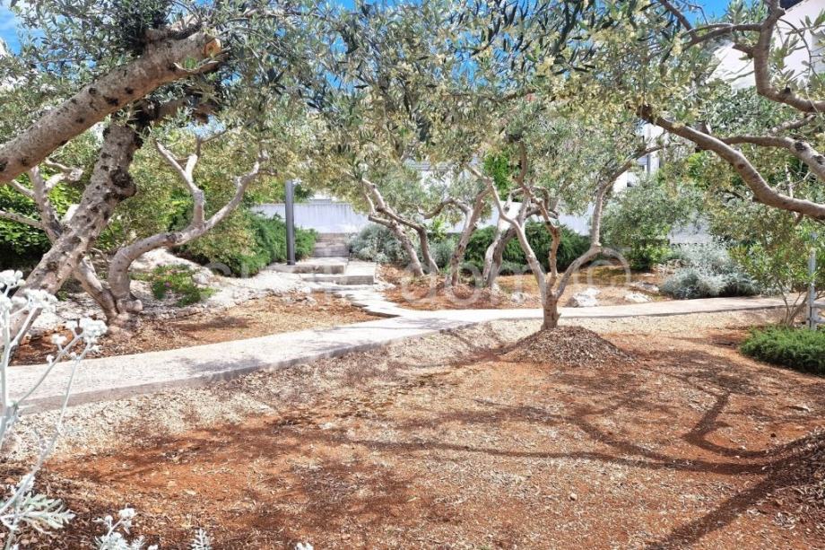 Na prodaju je zaista atraktivna nekretnina udaljena svega nekoliko koraka od šljunčane plaže na Čiovu. Kuću krasi izuzetno prostrani vrt od preko 700 m2 koji je besprijekorno uređen mediteranskim biljem te veliki parking na koji stane komotno 4-5 automobila, kao i prostor za roštilj te pomoćni objekt. S obzirom na veličinu parcele moguća je nadogradnja kuće s još jednom etažom. Kuća je izgrađena 2009/2010.godine, ima bruto razvijenu površinu od 282 m2, odnosno 219 m2 neto razvijene površine i sastoji se do dvije etaže. Na donjoj etaži nalaze se dva apartmana, svaki po 59 m2, u kojima se nalaze dvije spavaće sobe, kupaonica i kuhinja otvorenog koncepta s dnevnim dijelom koji ima izlaz na popločanu terasu u sklopu vrta s pogledom na more. Na gornjoj etaži nalazi se zaista prostrani apartman od 100 m2 s impresivnim velikim predsobljem, dvjema kupaonicama, dvjema spavaćim sobama, velikom kuhinjom s blagovaonicom i dnevnim boravkom koji ima izlaz na terasu s odličnim pogledom na more. Kuća je odlično opremljena, klimatizirana, ima provedeno centralno grijanje te se prodaje kompletno namještena i opremljena, u potpunosti uključeno u cijenu. Zahvaljujući iznimnoj lokaciji blizu plaže i svih sadržaja te veličini parcele ovo je zaista jedna od rijetkih nekretnina na području Čiova i izuzetna je prilika za investiciju. Vlasništvo uredno.