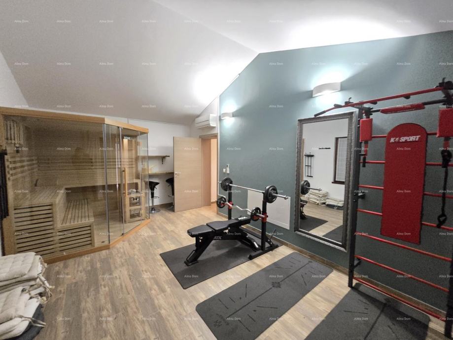 U prizemlju s desne strane se nalazi ulazni hodnik, kupaonica, tehnička soba, te relax soba sa saunom te malim GYM-om.