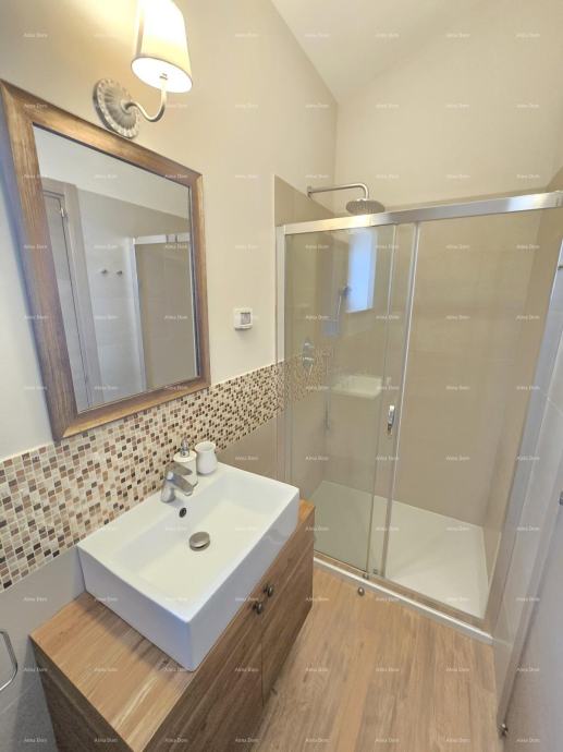 U prizemlju s ljeve strane se nalazi prostrani dnevni boravak s izlazom na terasu, kuhinja te blagavaonica, spavaća soba s kupaonicom, toaletom za goste te kupaonicom s kadom. Unutarnje stepenice vode na kat gdje se nalaze dvije spavaće sobe s kupaonicama.