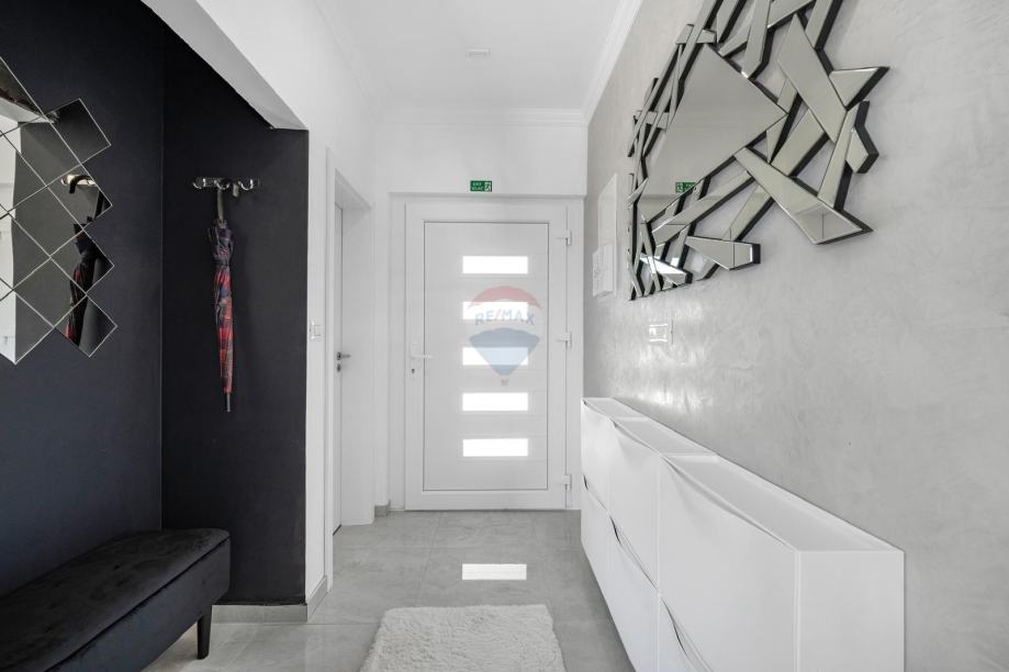 Kuća se sastoji od prizemlja u kojem se nalazi prostrani trosobni stan stambene površine 88 m2, koji se sastoji od ulaznog prostora 2,89 m2, wc-a 2,45 m2, kuhinje s blagovaonicom i dnevnim boravkom 35,60 m2, hodnika 6,10 m2, spavaće sobe 10,53 m2, kupaonice 6,91 m2, spavaće sobe 9,80 i spavaće sobe 13,65 m2.