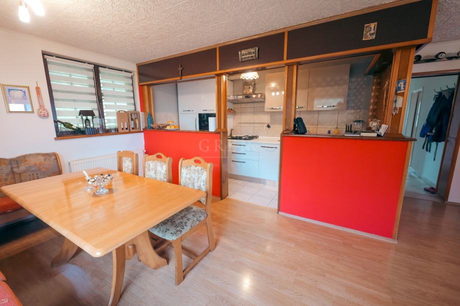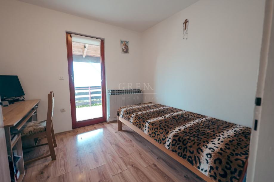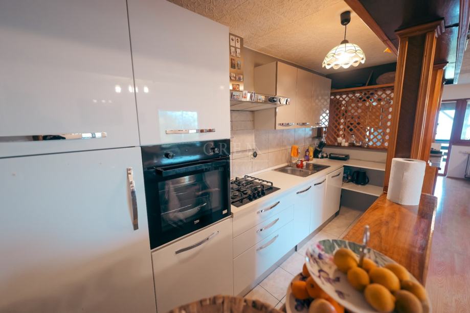 Kat: 4 spavaće sobe, dnevni boravak sa kuhinjom i blagovaonom, velika terasa na koju se dođe iz svih soba i velika kupaonica sa wc-om