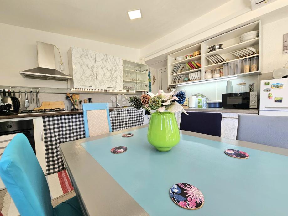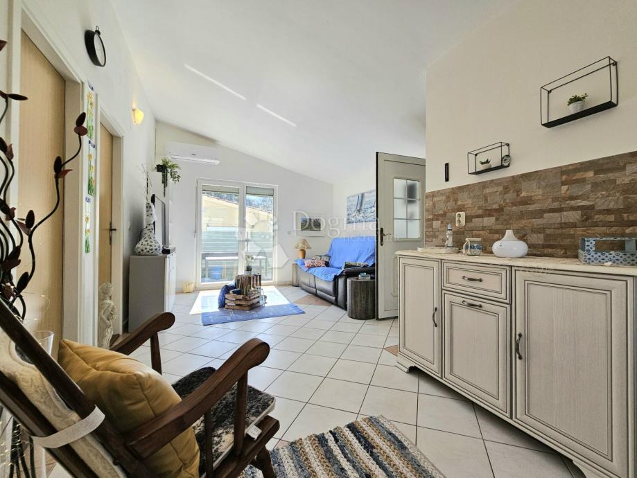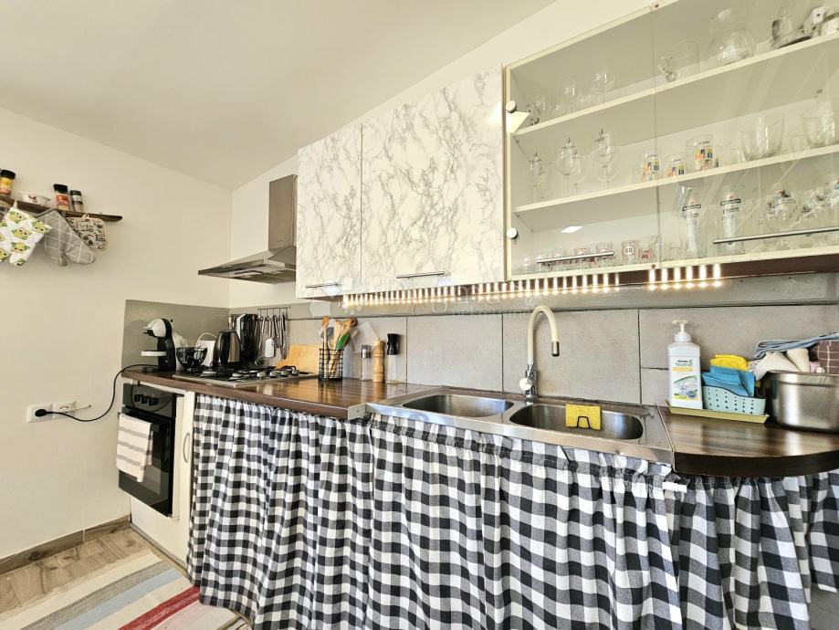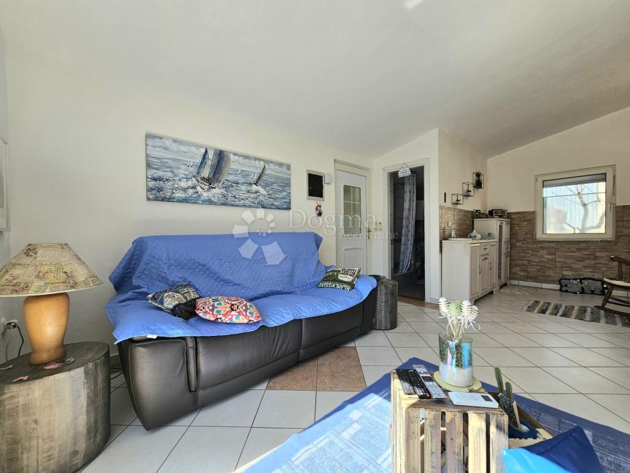 Unutrašnjost kuće čine kuhinja s blagovaonicom, kupaonica, prostrani dnevni boravak s izlazom na terasu te dvije spavaće sobe.