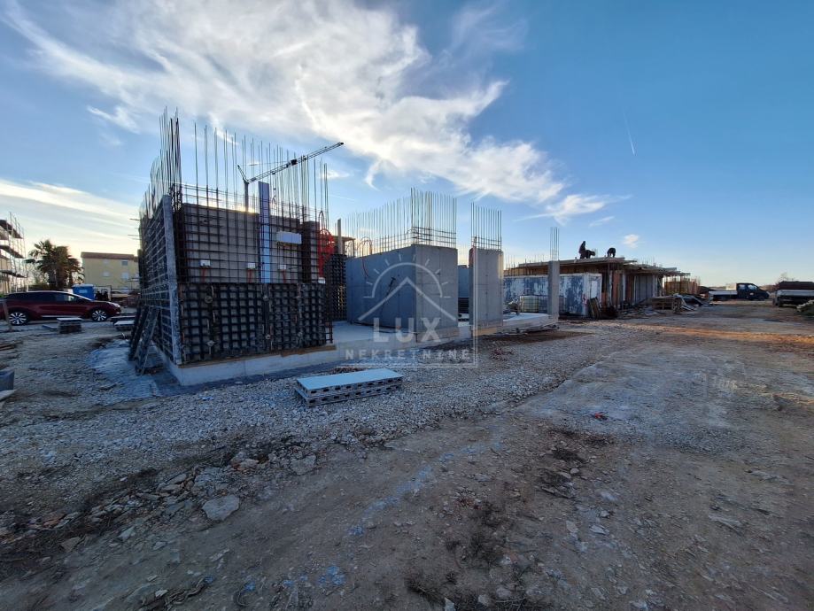 Oprema: termofasada debljine 10 cm (predviđeni energetski razred A+), protuprovalna i protupožarna ulazna vrata, troslojna vanjska PVC stolarija s roletama i komarnicima, u svakoj sobi klima uređaj, a u kupaonicama podno grijanje, na podovima keramika 1. klase.