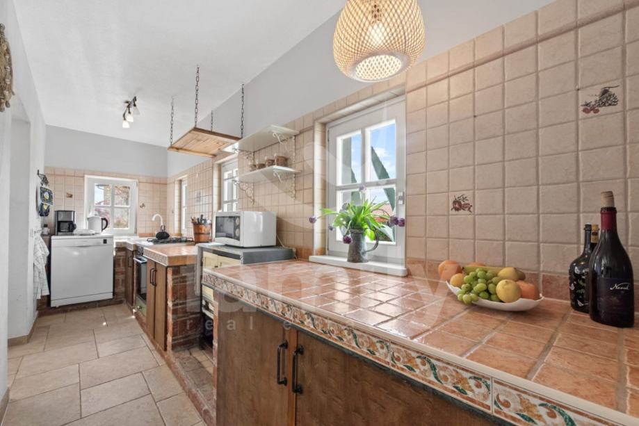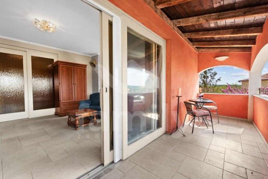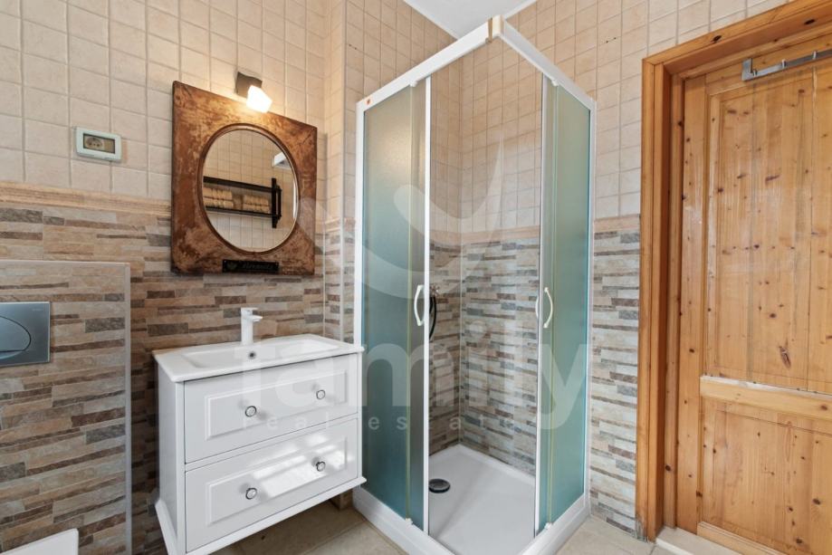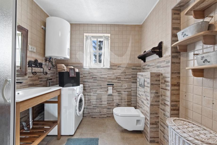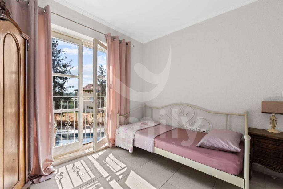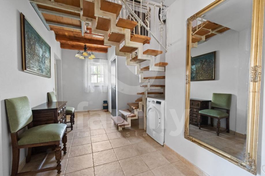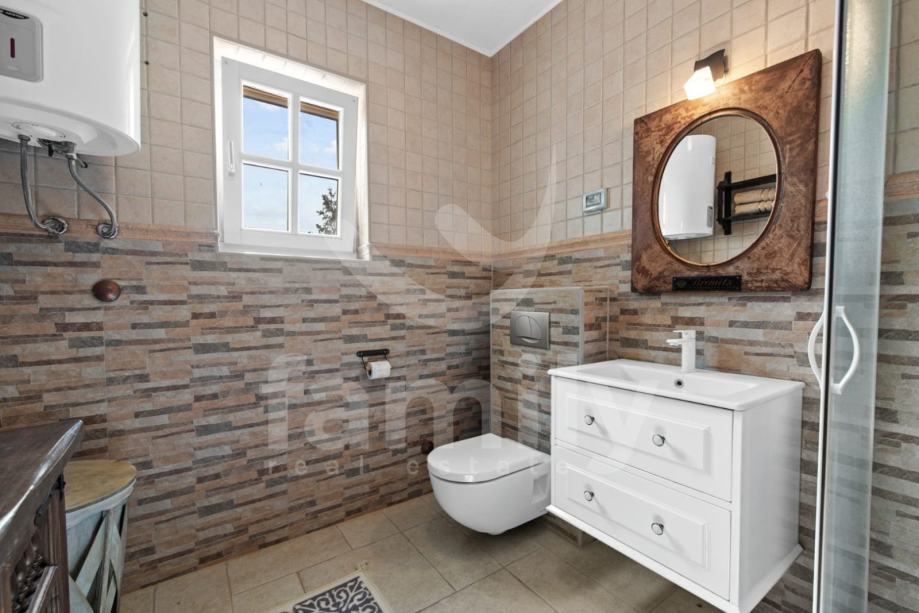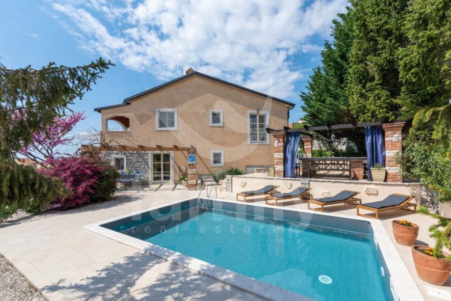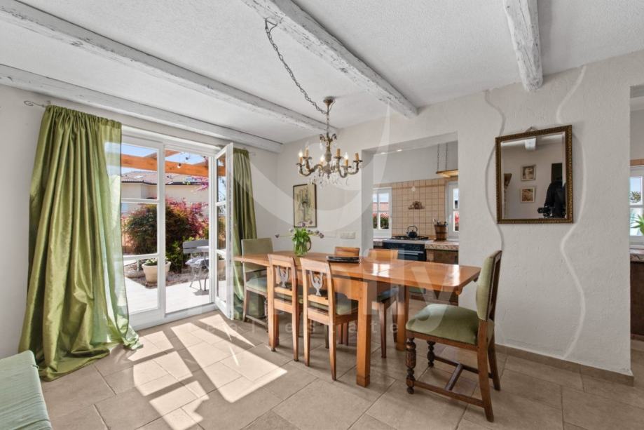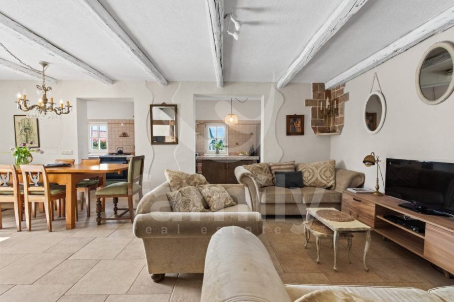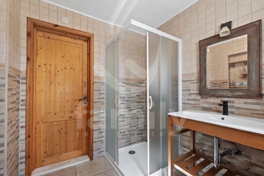 Na samo 4 km od grada Poreča i predivnih plaža nalazi se ova predivna, samostojeća mediteranska kuća. Ova šarmantna kuća idealna je za miran i opuštajući život, jer se nalazi u mirnom i uređenom naselju. Ograđena je cijelom parcelom ukrasnim biljem i lijepom ogradom, što joj pruža dodatnu privatnost. Kuća se prostire na 180 m² i nudi u prizemlju prostran dnevni boravak idealan za obiteljska okupljanja s otvorenim prostorom ka blagovaonici i potpuno opremljenoj kuhinji za uživanje u zajedničkim obrocima. U istoj prostoriji nalazi se i tradicionalni istarski kamin za zimske ugođaje. Ovaj zajednički prostor ima izlaz u uređeni vrt s bazenom i roštiljem. U prizemlju se nalazi i jedna spavaća soba s francuskom terasom i izlazom u vrt. Prostran hodnik sa stepenicama vodi na prvi kat. Veoma praktične prostorije u prizemlju su dva kompletna kupatila, jedno smješteno u hodniku, a drugo zasebno u zajedničkom prostoru dnevnog boravka.