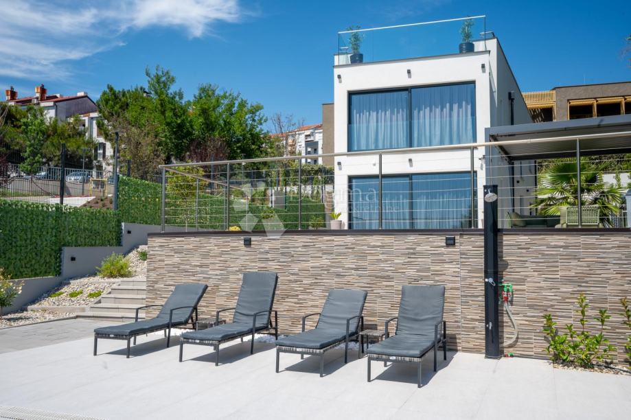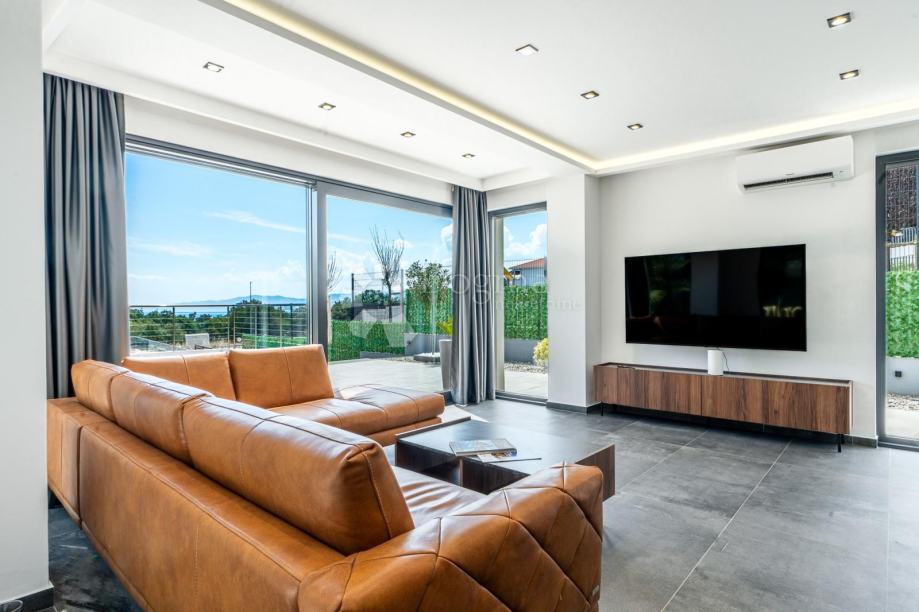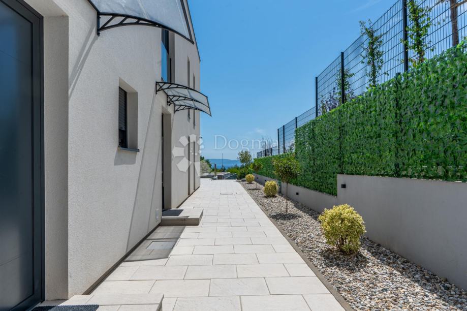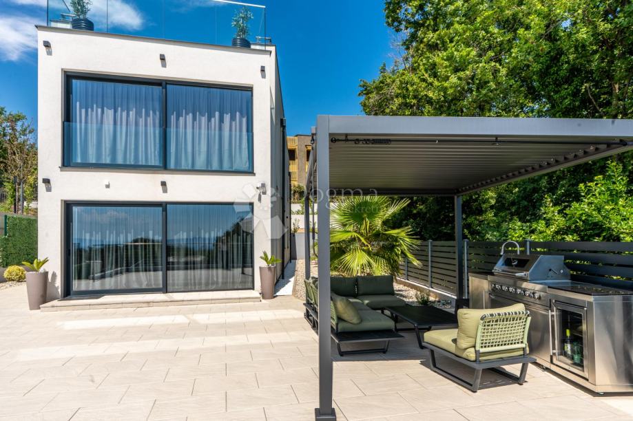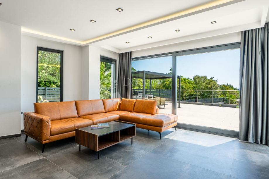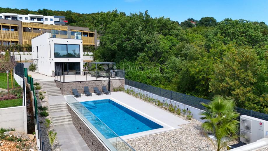 Na jednoj od najcjenjenijih adresa hrvatske obale, u elitnom dijelu Kostrene, smjestila se ova impresivna moderna vila, udaljena svega 150 metara od mora. Nalazi se u prvom redu do mora, unutar zaštićenog zelenog pojasa gdje nije dozvoljena daljnja gradnja – što jamči potpunu privatnost, trajni pogled na plavetnilo i ekskluzivnost koju rijetko koja nekretnina može ponuditi.