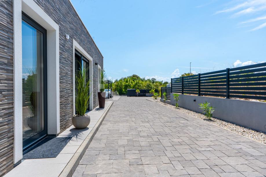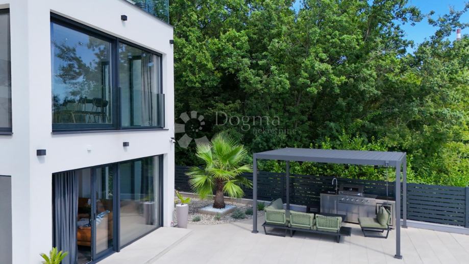 Vila je izgrađena na parceli od 1.060 m², čiji je svaki detalj pažljivo promišljen – kombinacija elegantno popločenih površina i mediteranskog zelenila, njegovanih automatskim sustavom navodnjavanja.