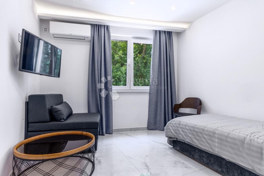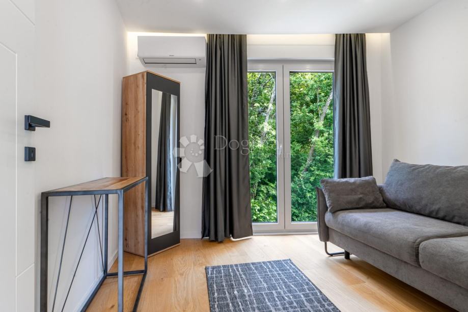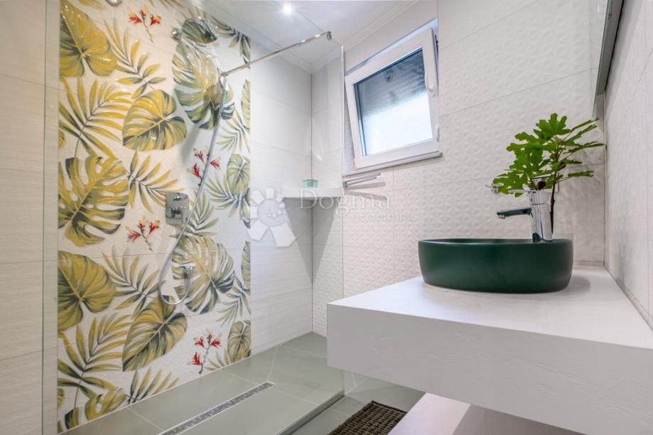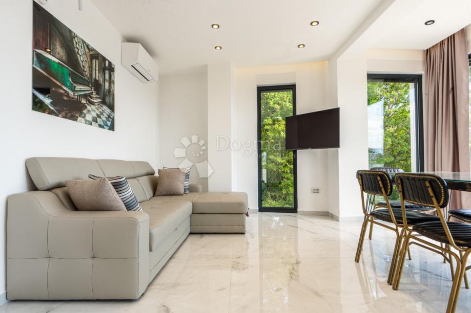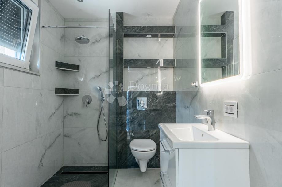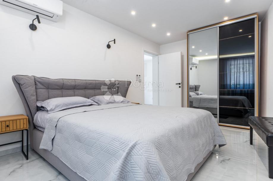 Korišteni su samo najkvalitetniji materijali: talijanske pločice prve klase, vrhunska bijela tehnika renomiranih proizvođača kao što su Miele, Bosch i Electrolux, dok su sanitarije marke Grohe i Tece, uključujući pametni WC s funkcijom bidea. Stolarija je troslojna, kombinacija PVC i ALU profila, uz automatsko upravljanje roletnama – jamčeći vrhunsku izolaciju i komfor.