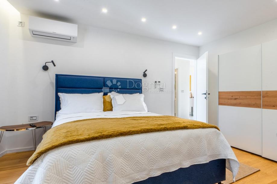 Prizemna jedinica nudi prostrani dvosobni stan s master spavaćom sobom, dodatnom kupaonicom, kotlovnicom, te dnevnim boravkom iz kojeg se izlazi na natkrivenu lounge terasu. Gornja jedinica ima zaseban ulaz i organizirana je kao trosoban stan s još jednom luksuznom master spavaćom sobom i dodatnom kupaonicom.