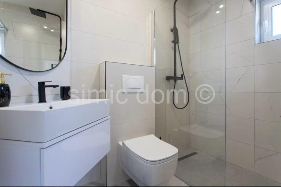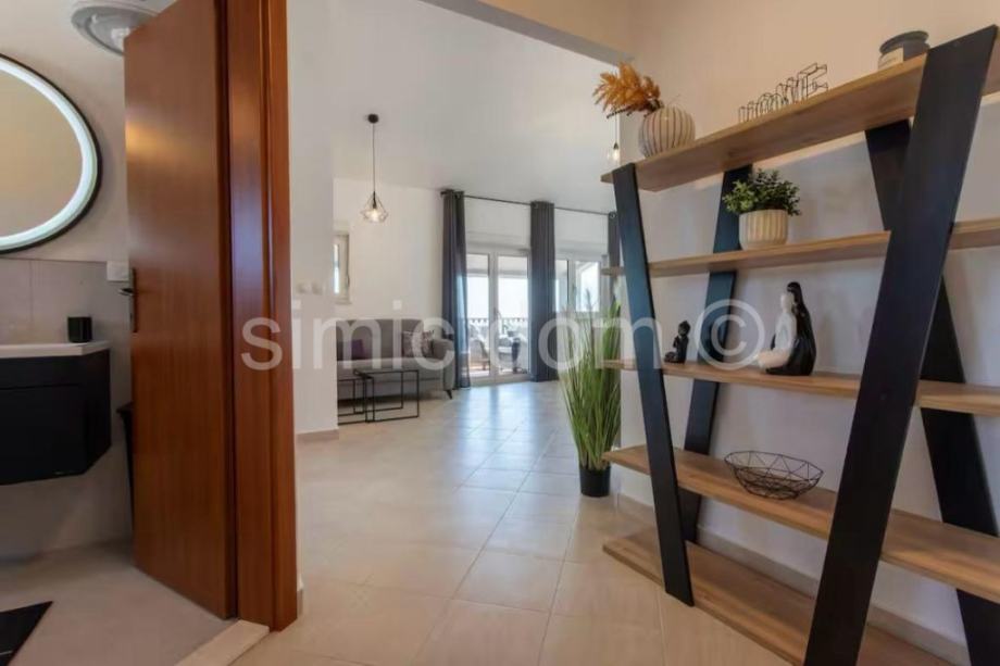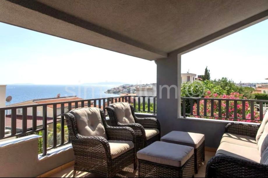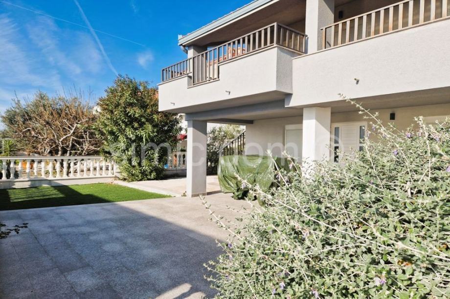 Na prodaju je izrazito atraktivna kuća smještena na odličnoj poziciji sa koje se pruža spektakularan pogled na more sa svih etaža. Kuća se nalazi u mirnoj ulici i udaljena je 180m od plaže. Kuća ima ukupnu površinu od 117,78m2 i sastoji se od dvije etaže, odnosno dvije odvojene stambene jedinice. U prizemlju se nalazi apartman sa dvije spavaće sobe, ostavom, kupaonicom te kuhinjom i blagovaonicom iz koje se izlazi na natkrivenu terasu u predivno uređen vrt. Na gornjoj etaži nalazi se apartman koji se sastoji također od dvije spavaće sobe, kupaonice te toaleta, dnevnog boravka, lođe te velike natkrivene terase sa fenomenalnom pogledom. U sklopu predivno uređenog vrta nalazi se prostrani parking za 4 automobila, sunčalište te sjedeća garnitura idealna za uživanje u ljetnim večerima uz roštilj. Kuća se prodaje namještena i opremljena. Apartmani su klimatizirani te opremljeni kvalitetnom stolarijom , sanitarijama i keramikom, dok gornji apartman treba opremiti kuhinjom, budući da su sve instalacije već pripremljene. Nekretnina je izrazito dobro uređena, održavana i biti će predivan dom kupcima koji žele mirnu lokaciju i more u blizini, kao i onima koji traže dobru investiciju. Vlasništvo je uredno.