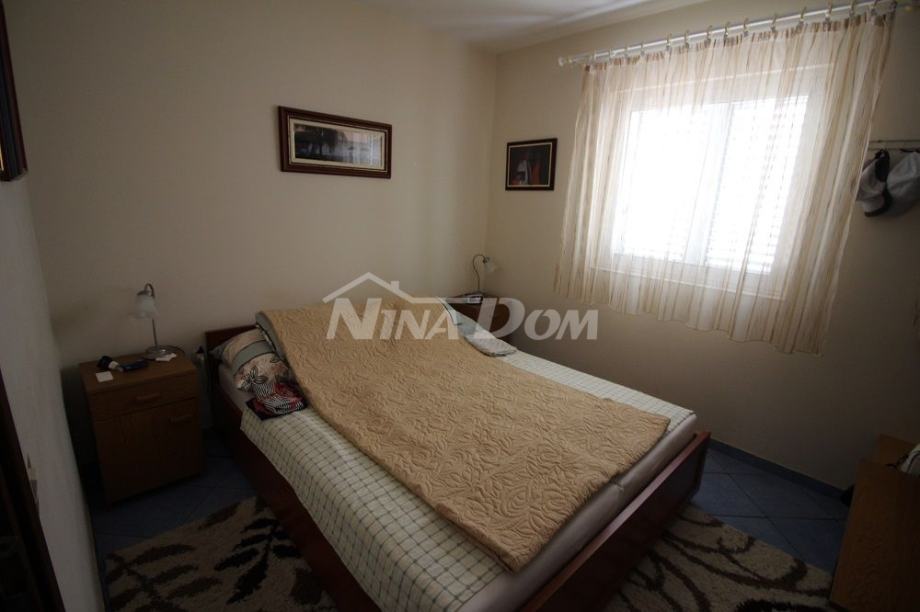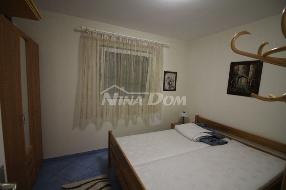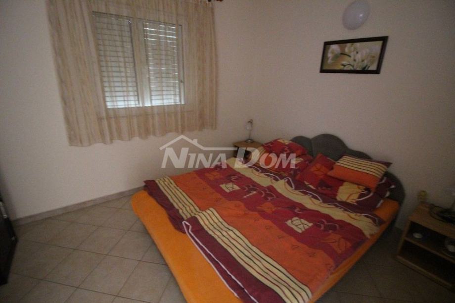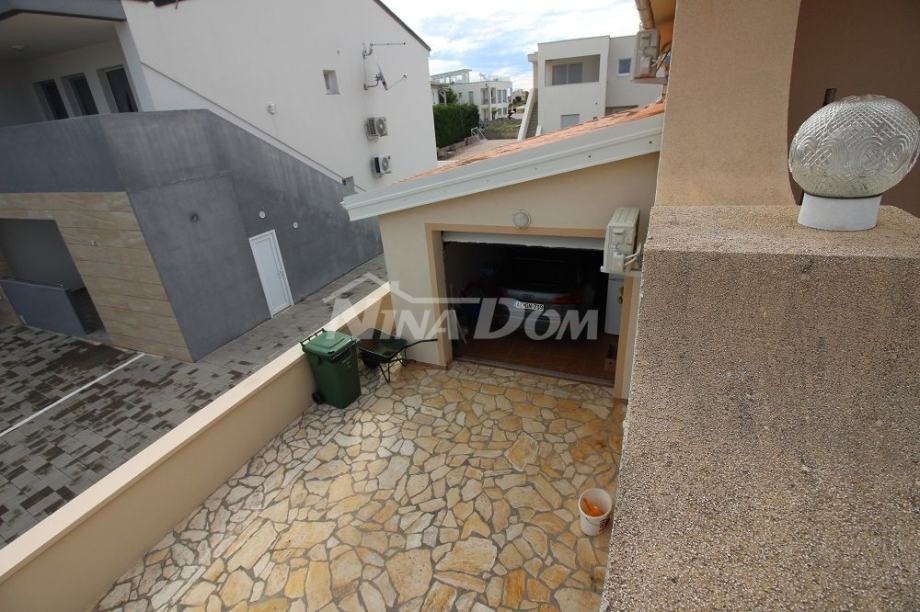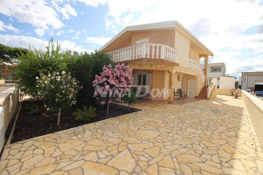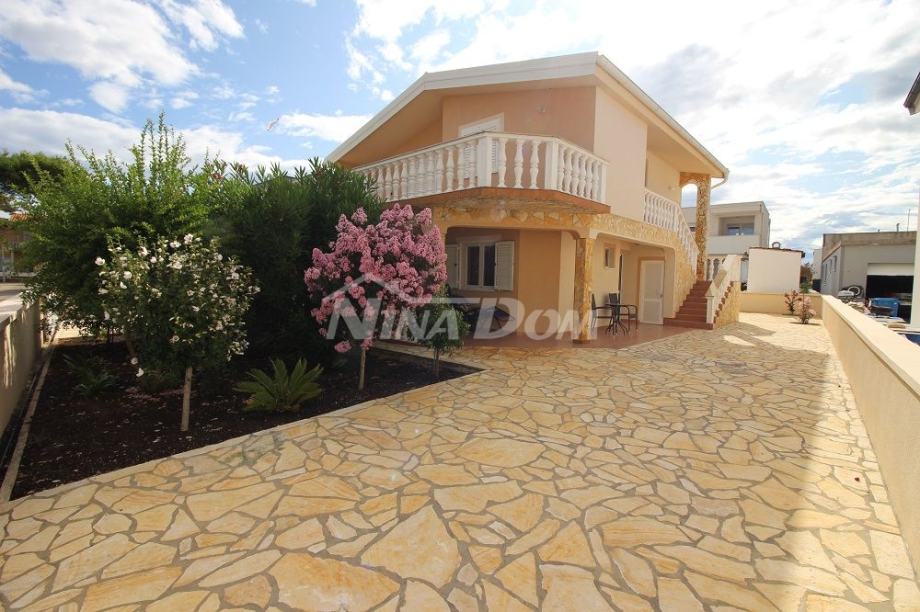 Samostojeća nekretnina na južnom dijelu otoka Vira udaljena od mora i plaže 120 metara.Izgrađena je na zemljištu od 408 m2 vanjskih tlocrnih dimenzija 11.64 x 11.07 met.sastoji se od dva dvosobna stana s lijepim terasama (prizemlje 59,41 m2 i kat 60.33 m2) garaža 18.36 m2, ostava pod stepenica 5.21 m2. Apartmani su klimatizirani, opremljeni i kao takvi se prodaju.Gradski vodovod i kanalizacija, okućnica lijepo uređena.
