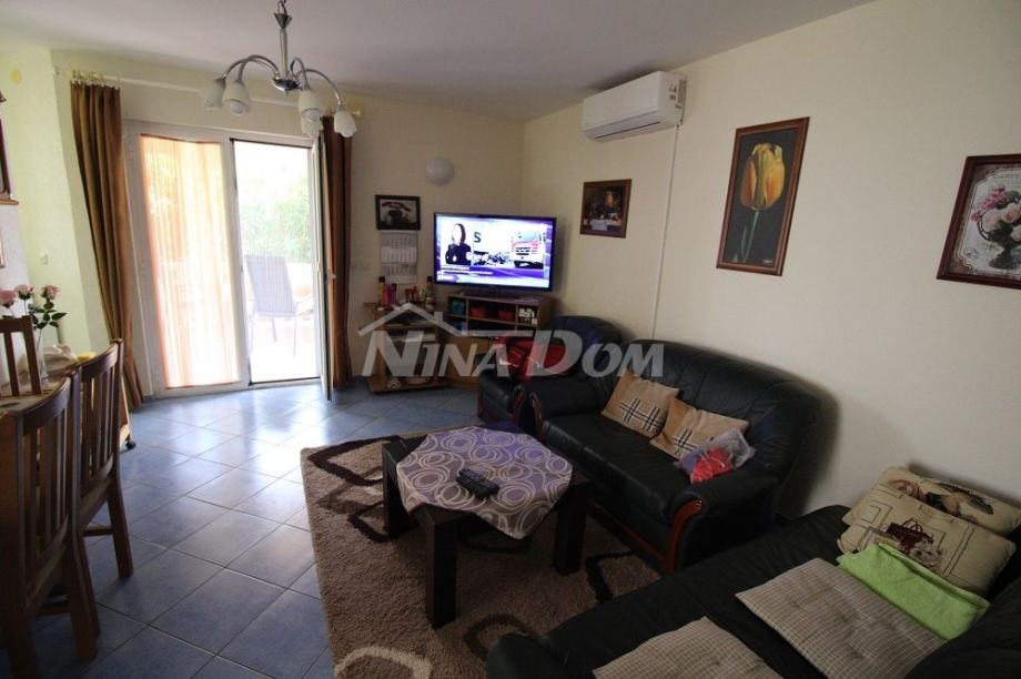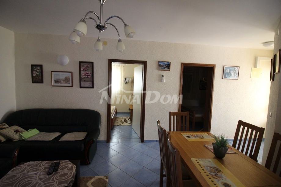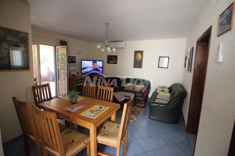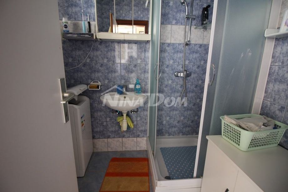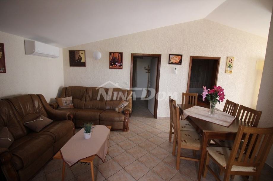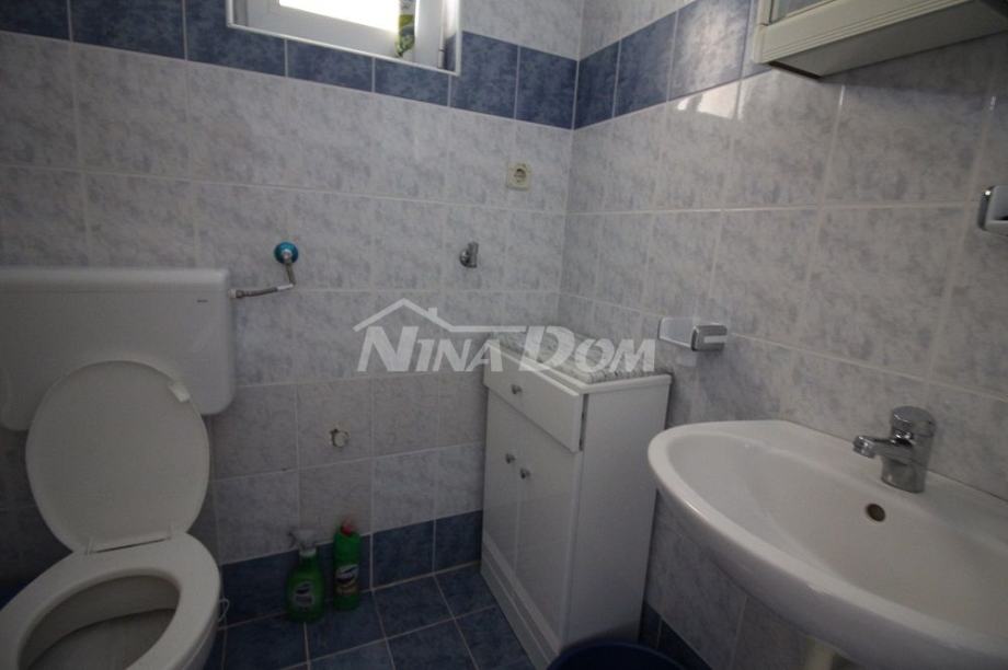 Samostojeća nekretnina na južnom dijelu otoka Vira udaljena od mora i plaže 120 metara.Izgrađena je na zemljištu od 408 m2 vanjskih tlocrnih dimenzija 11.64 x 11.07 met.sastoji se od dva dvosobna stana s lijepim terasama (prizemlje 59,41 m2 i kat 60.33 m2) garaža 18.36 m2, ostava pod stepenica 5.21 m2. Apartmani su klimatizirani, opremljeni i kao takvi se prodaju.Gradski vodovod i kanalizacija, okućnica lijepo uređena.