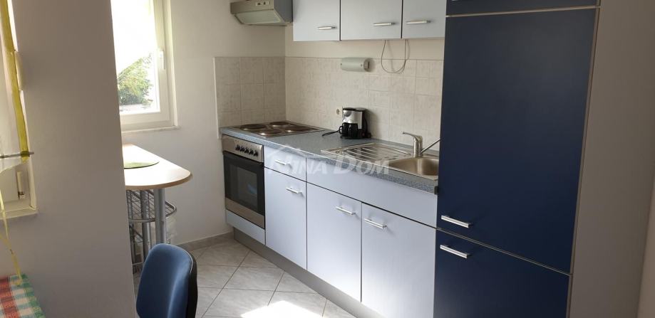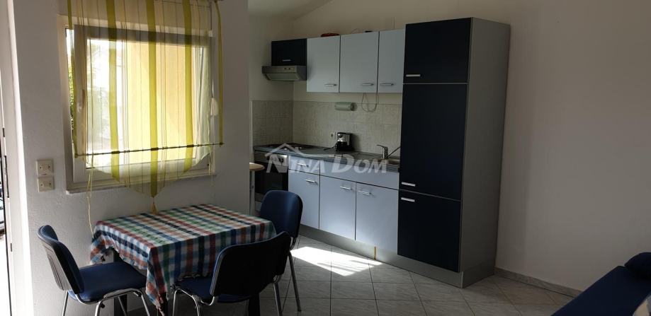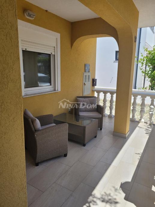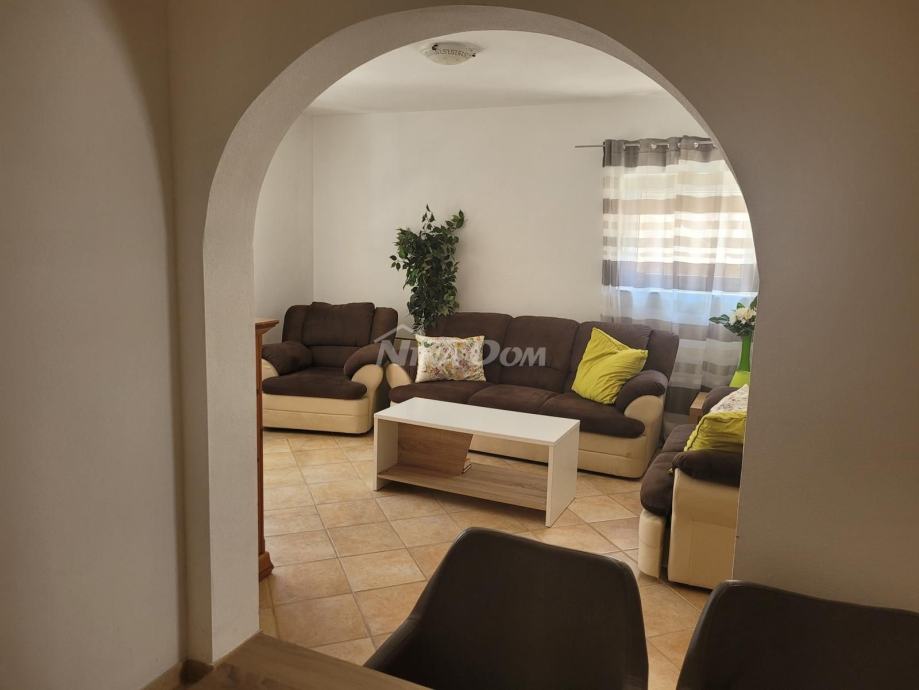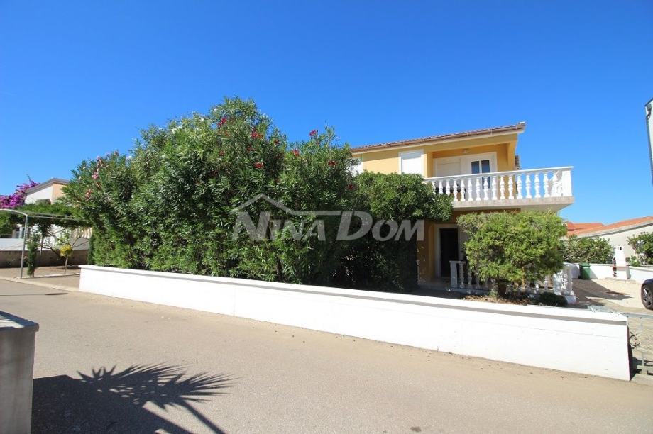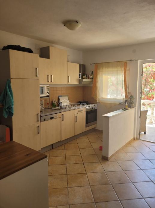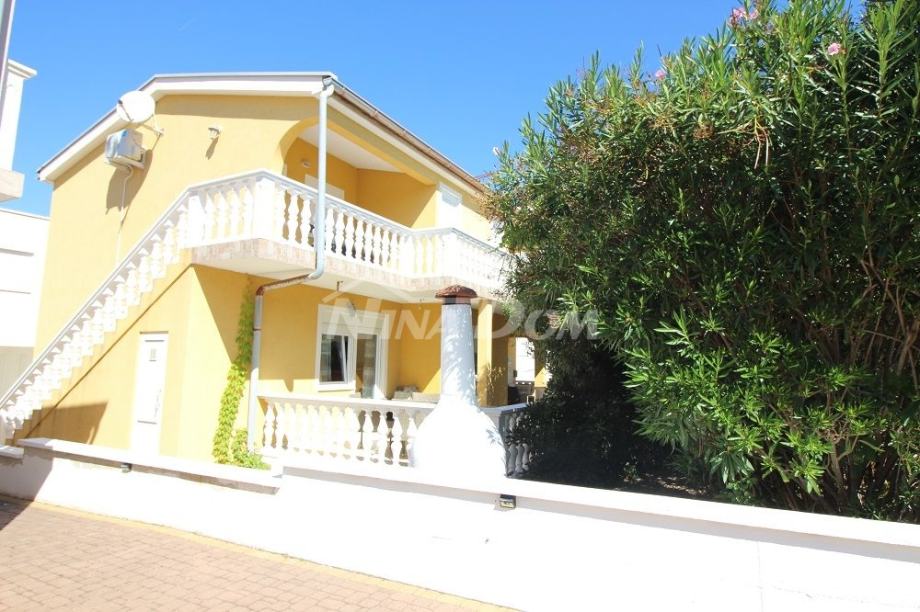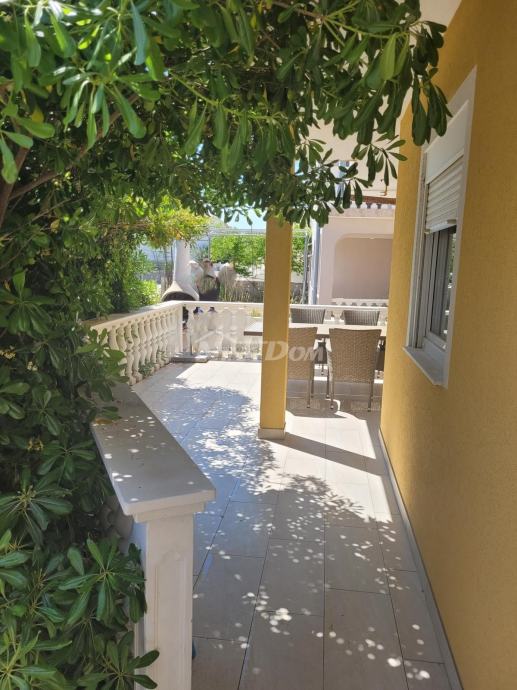 Samostojeća kuća izgrađena na 328 m2 zemljišta, tlocrtnih dimenzija 12.61 x 9.09 met. u kojoj se nalaze tri stambene jedinice.Prizemlje: trijem, kuhinja s blagovaonicom, dnevni boravak, tri spavaće sobe, kupaona i terasa.Kat: stubište s obje strane nekretnine. Na katu dva identična apartmanaod kojih svaki ima kuhinju, dnevni boravak,kupaonu i jednu spavaću sobu.Ispod svakih stepenica nalazi se ostava, u jednoj ostavi nalazi se perilica, pumpa za vodu i bojler.Nekretnina je komplet opremljena i kao takva se prodaje. Klimatizirana.Okućnica lijepo uređena s dosta zelenila.Voda:cisterna za vodu, septička jama, priključak na elektro mrežu.