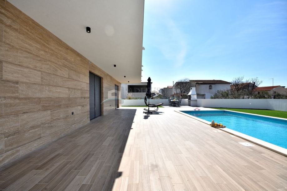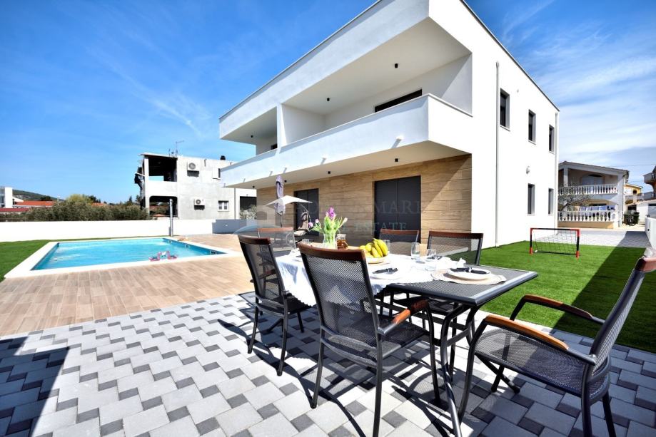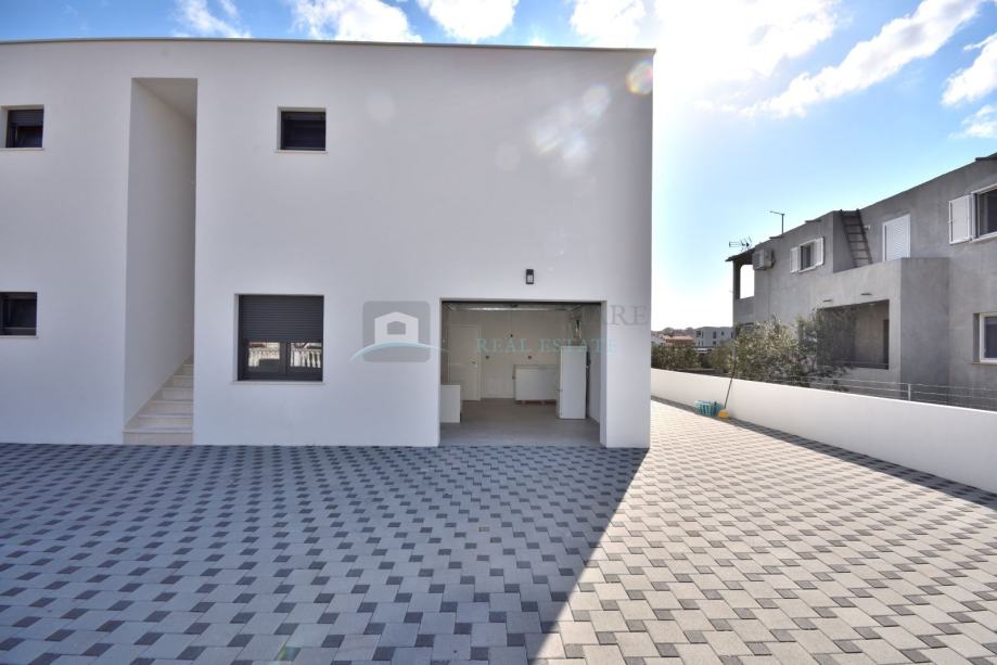 Prodaje se novoizgrađena kuća u mirnom dijelu Vodica. Udaljena je cca 1000 metara od mora te 1300 od centra grada.