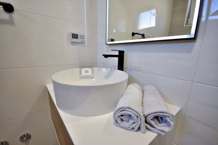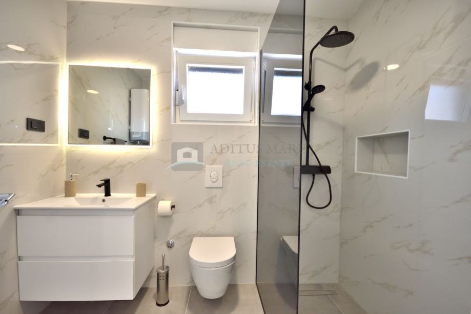 Kuća je građena kvalitetnim materijalima, svaki stan je klimatiziran te ima ugrađeno podno grijanje. Na svim zatvorima su komarnici te električne rolete.