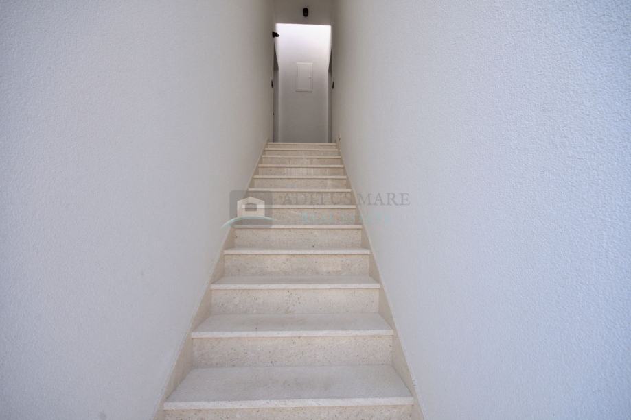 Stan u prizemlju se sastoji od ulaza, WC, kuhinje, blagovaonice, dnevnog boravka, tri spavaće sobe te kupaonice. Iz blagovaonice i dnevnog boravka se izlazi na prostranu terasu i dvorište u kojem se nalazi bazen. Garaža je spojena sa stanom u prizemlju.