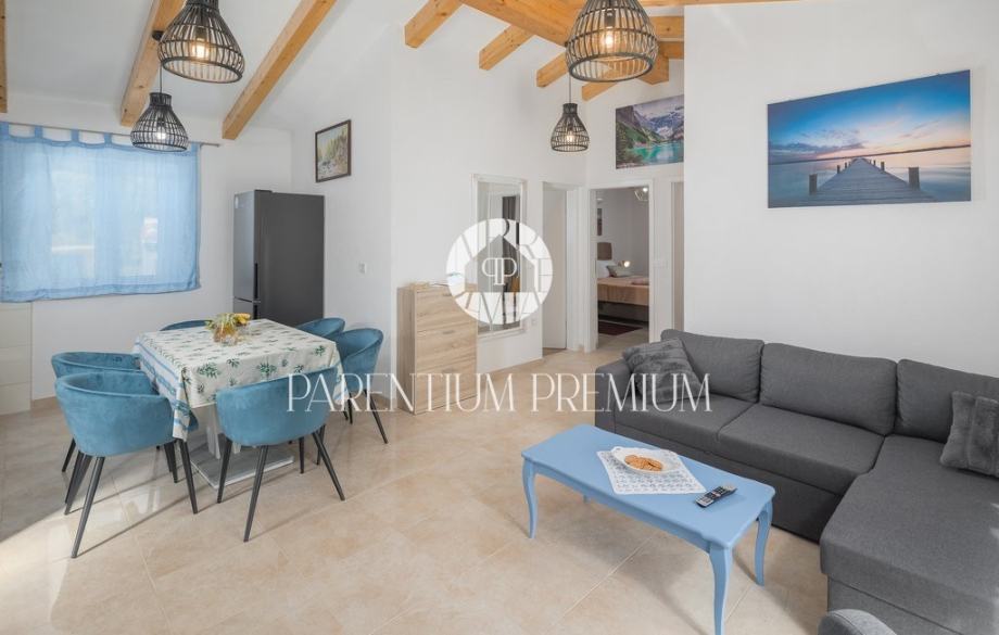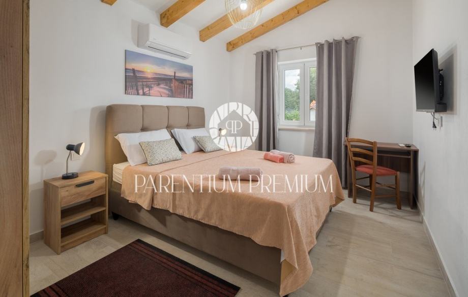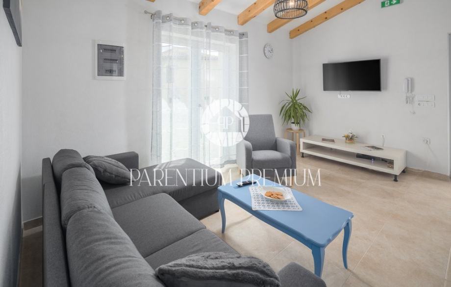 Na uređenoj okućnici se nalazi bazen, sunčalište, ljetna kuhinja te parkirno mjesto.