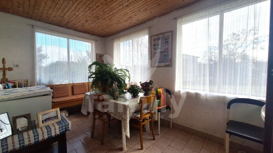 Upravo u sklopu općine Barban, a u jednom mirnom naselju, na svega dvadesetak kilometara od Pule, nalazi se ova samostojeća prizemnica površine 112 m2 na prostranom građevinskom zemljištu. Kuća se sastoji od veoma osvijetljenog ulaznog predprostora, hodnika iz kojeg se pristupa u dnevni boravak sa zasebnim kuhinjskim prostorom i kupatilom, te sa druge strane u dvije veoma prostrane spavaće sobe. Sa stražnje strane objekta nam se nalazi kotlovnica i velika ostava idealna za skladištenje veće količine stvari sa izlazom na tavanski prostor. Pored stambenog objekta na veoma prostranoj i pomno održavanoj okućnici površine 1600 m2 koja je građevinske namjena nalazi nam se i konoba, ostava, garaža i još jedna pomoćna prostorija sveukupne površine nešto manje od 100 m2 koja nam nudi mogućnost dodatne gradnje i nadogradnje postojećih objekata što znatno povećava potencijal nekretnine. Kuća je opremljena centralnim grijanjem na naftu, visokokvalitetnom PVC stolarijom sa griljama, veoma očuvanim drvenim parketima na podnim oblogama u spavaćim sobama, te keramikom koja potražuje osviježenje u ostatku objekta. Kuća je potpuno useljiva sa potrebom za određenim korekcijama, nalazi se na veoma mirnom mjestu okreža zelenilom i prirodom, a opet sa asfaltiranim pristupom i svim potrebnim sadržajima u blizini.
