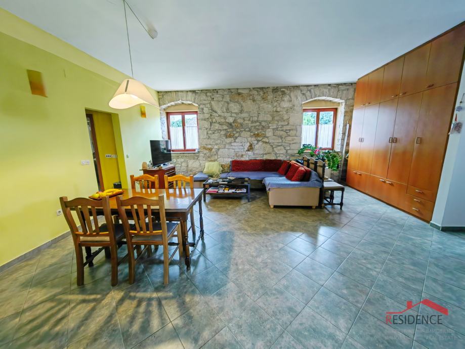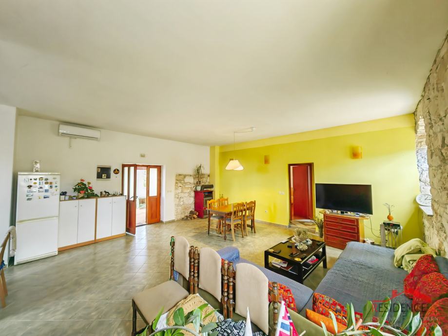 Prodajemo u Valturi samostojeću kuću prizemnicu. 136 m2 brutto površine. Sastoji se od velike natkrivene terase, prostranog dnevnog boravka s kuhinjom i blagovaonicom, dvije spavaće sobe i kupatila. Kuća je kamena. Grijanje na drva i klima. Okućnica 618 m2. Mirna lokacija.Udaljenost od mora 4 kilometra