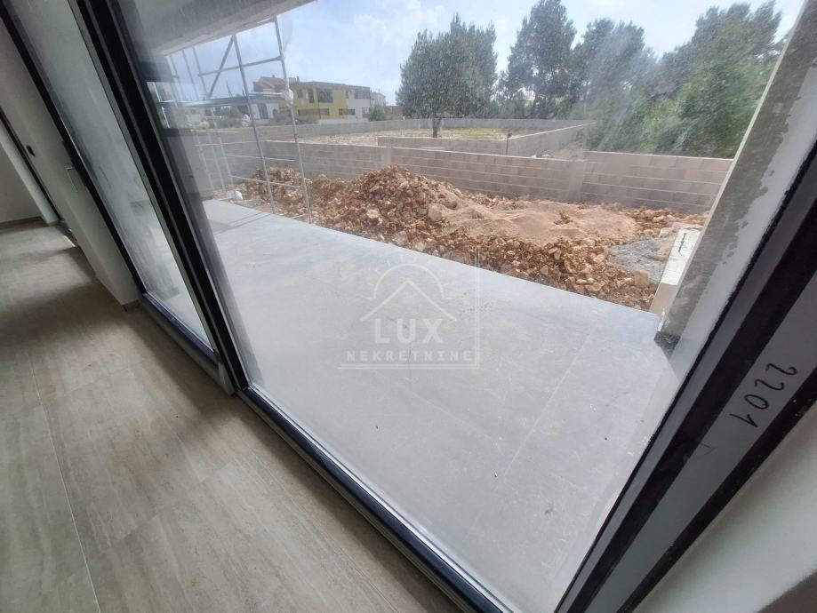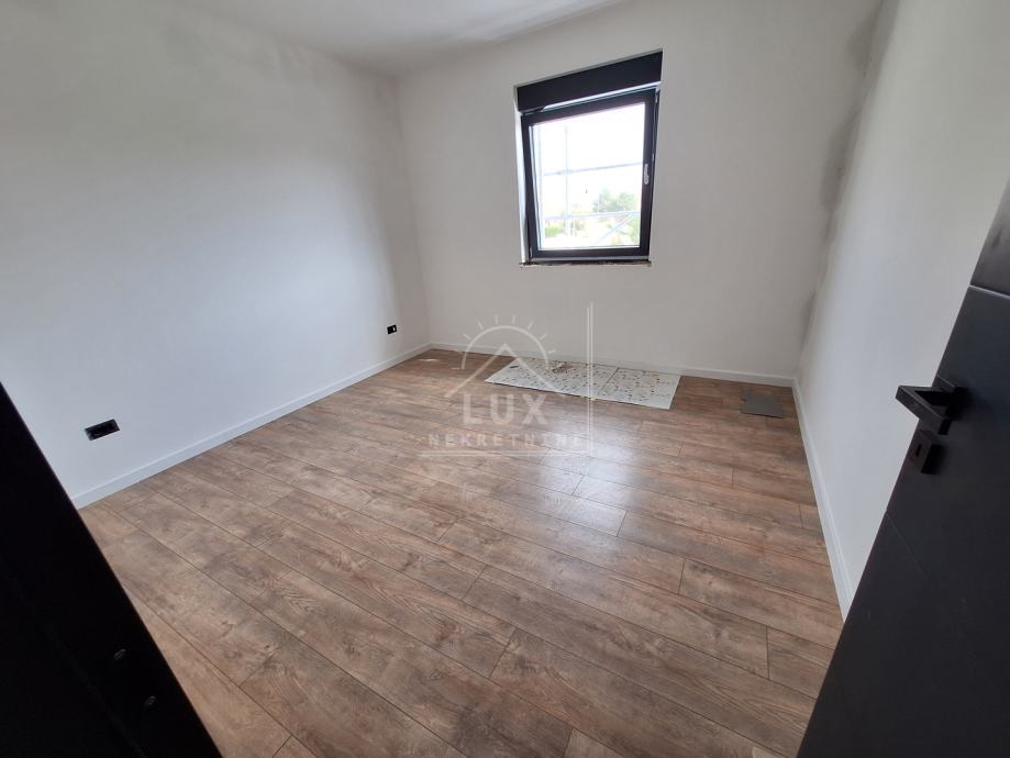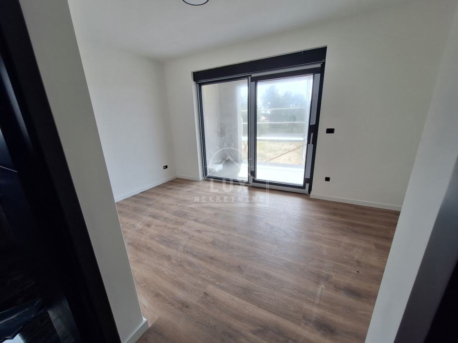 U prizemlju se nalazi natkriveni ulaz (pov. 4.81 m2), hodnik (pov. 11.61 m2), garaža (pov. 17.55 m2) (vratima spojena s hodnikom kuće), prostrani dnevni boravak s blagovaonicom i kuhinjom (pov. 47 m2), spavaća soba (pov. 12.42 m2), kupaonica (pov. 6.84 m2) i loggia (pov. 19.90 m2).