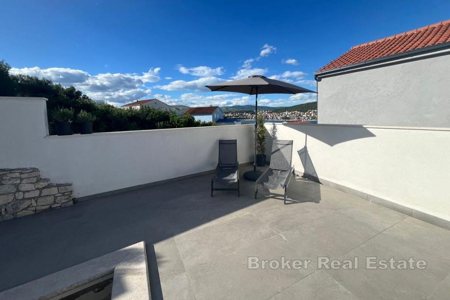 Kuca se sastoji od 3 etaže. U prizemlju se nalazi velika ostava, dok se na prvome katu nalaze 2 spavaće sobe, kupaonica, hodnik, kuhinja spojena sa blagovaonicom, dnevni boravak te velika terasa.