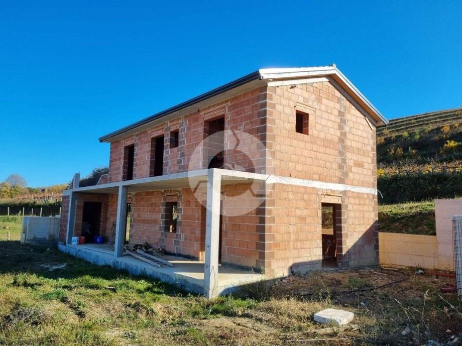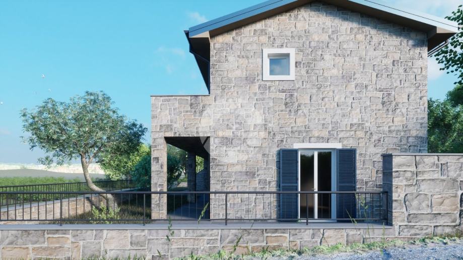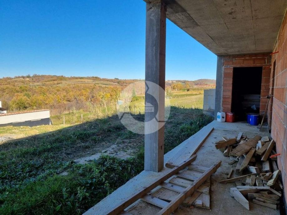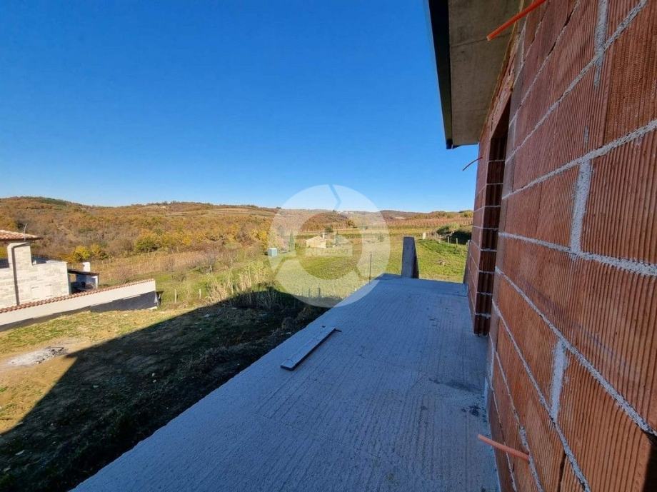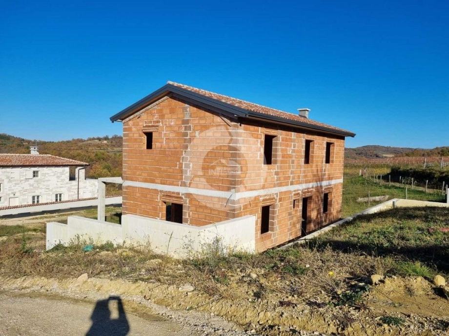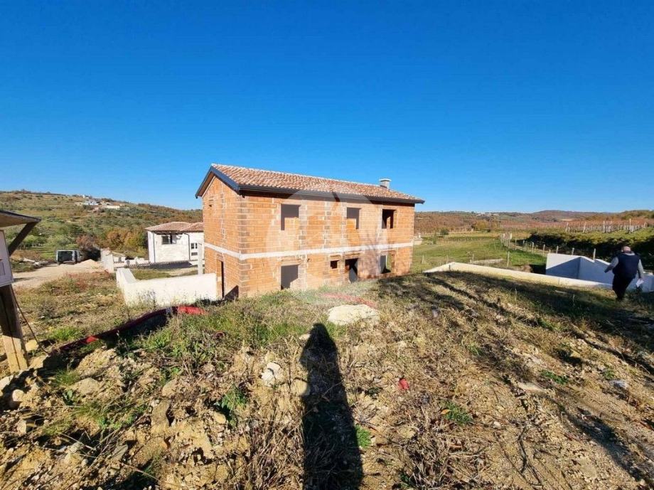 Prodaje se kuća na prekrasnoj lokaciji u okolici Buja, na brdašcu sa otvorenim pogledom na vinorade i maslinike. U tom mjestu, na cca 50 metara, se nalazi restoran i centra malom mjesta. Glavni sadržaji su u Bujama na 6 km. Kuća je trenutno u izgradnji i prodaje se dovršena, bez namještaja. U vrtu je predviđen je bazen dimenzija 10x3,70 m, ljetna kuhinja i roštilj, te parking. Sastoji se od prizemlja i kata. Ukupno će imati 3 spavaće sobe, 3 kupaone, wc za goste. Grijanje i hlađenje je pomoću fenkojlera, a topla voda će se grijati putem solarnog sistema. Stolarija: PVC sa škurama.