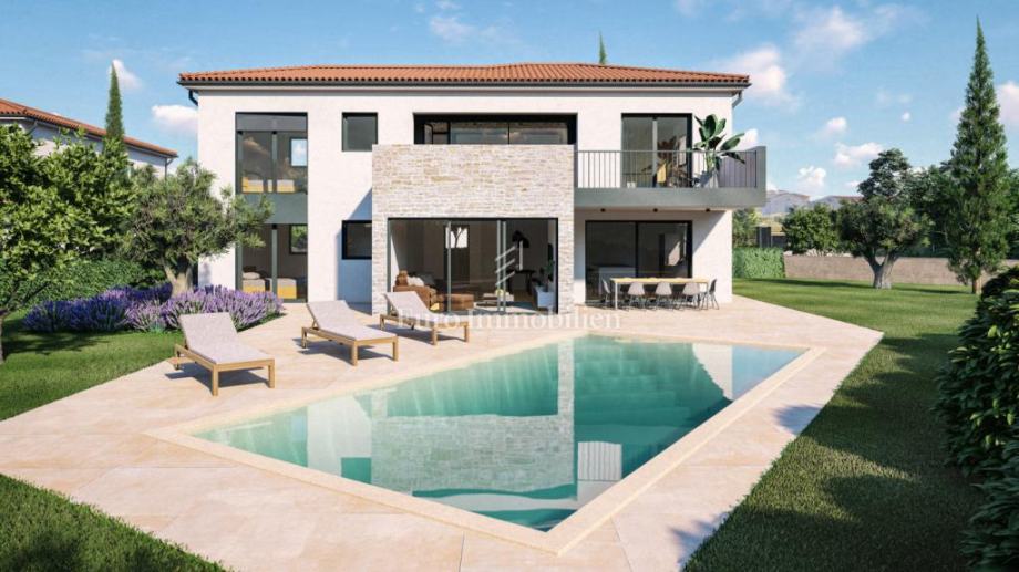 Prodaje se samostojeća villa s bazenom smještena na uzvisini u malom istarskom mjestu 15 km udaljenom od centra Poreča, te 10 km od mora i plaže.