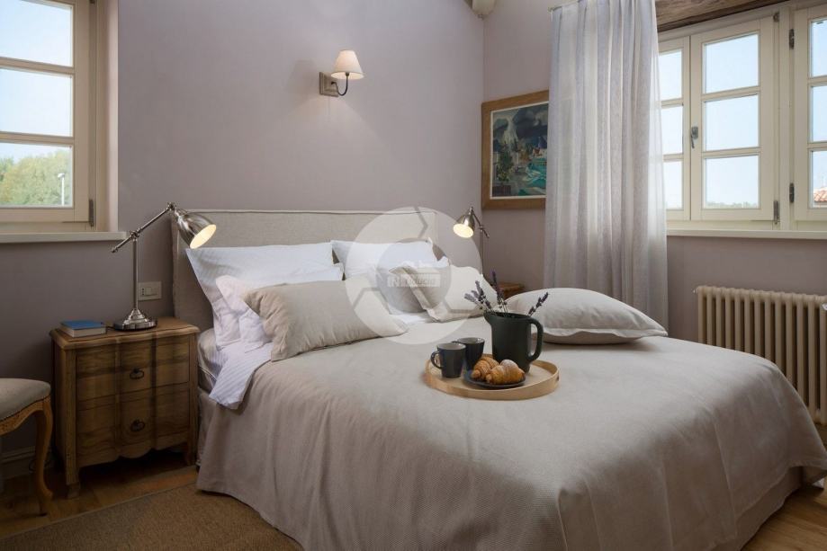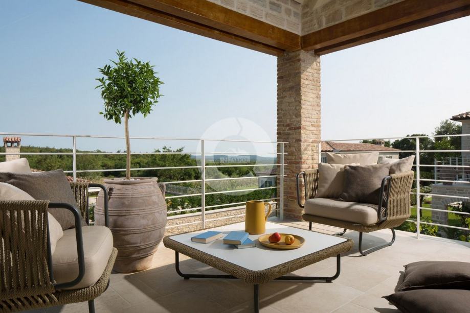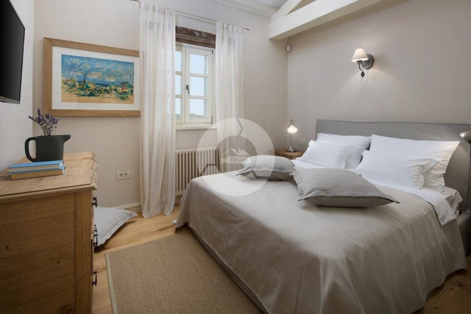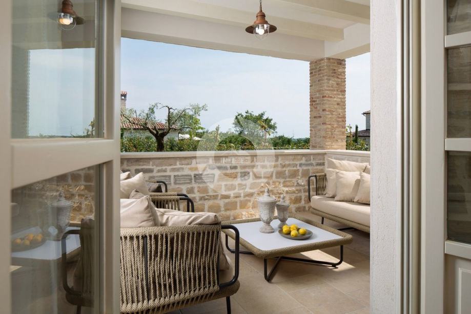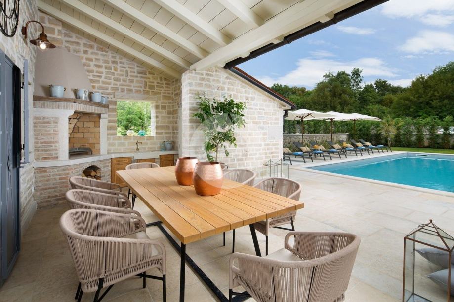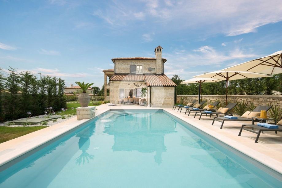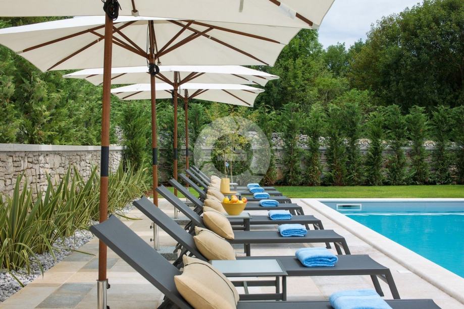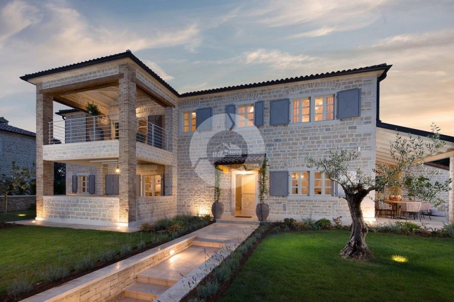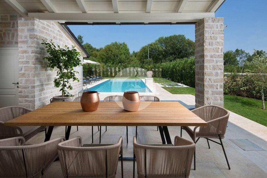Ova prekrasna vila izgrađena je u sklopu luksuznog projekta s 5810 m2 privatnog zemljišta koje nudi gostima ove 4 vile organski vrt sa sezonskim povrćem, fitnes na otvorenom, 2 teniska terena, 2 bocce terena, kao i igrališta za rukomet, nogomet, košarku i odbojku. Za pravi istarski osjećaj tu su i 3 boskarina, bijelo siva istarska goveda sa dugim rogom, simbolom regije. Elegantna, sofisticirana i vrhunski smještena usred slikovitog istarskog okoliša, a još uvijek nadomak sunčanih plaža i živopisnih primorskih mjesta, Villa nudi luksuzni smještaj u kojem se možete odmah opustiti i uživati u svakoj minuti svog odmora. Prizemlje je u cijelosti posvećeno raskošnom životu, s predivnom dugom prostorijom koja je lukama podijeljena na dnevni boravak i blagovaonicu / kuhinju s francuskim vratima, koja u sebi donose obilje toplog istarskog svjetla. Izložena kamena stolarija, spušteni stropovi i prekrasni otvoreni kamin stvaraju toplu i ugodnu atmosferu, a spoj modernog i vintage namještaja i vrhunske opreme pružaju vam udobnost visoke kvalitete. Tri spavaće sobe raspoređene su na gornjem katu, a dvije su u prizemlju koje se otvaraju izravno u ugodan privatni bazenski bazen, koji predstavlja fantastično mjesto za opuštanje i opuštanje, uključujući ljupki, natkriveni, autentični roštilj sa stolom za blagovanje koji čini prekrasnim odmor od sunca ili savršenog mjesta za uživanje u vašim obrocima na otvorenom. Nikada vam neće nedostajati stvari koje trebate posjetiti i mjesta koja ćete posjetiti, čineći ovu prekrasnu vilu odličnom bazom za svoj istarski izlet.