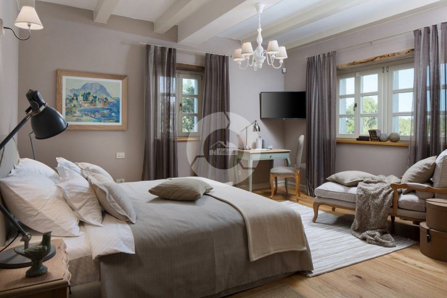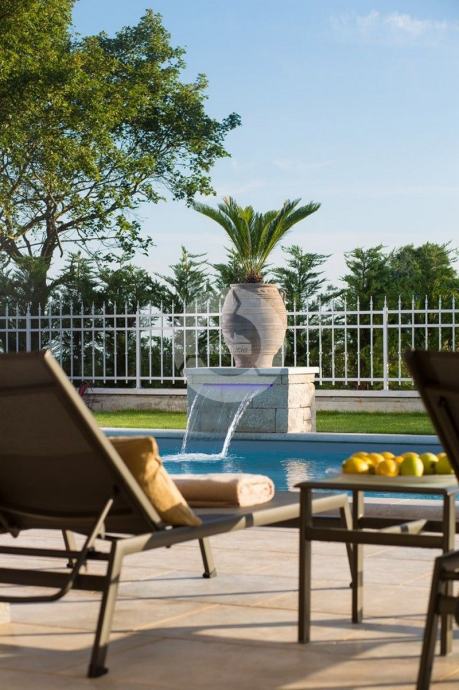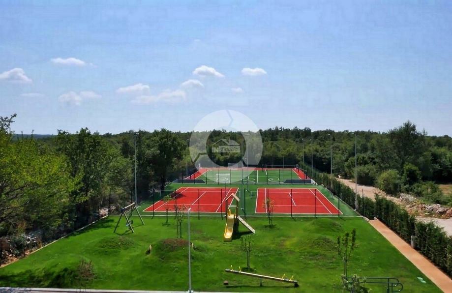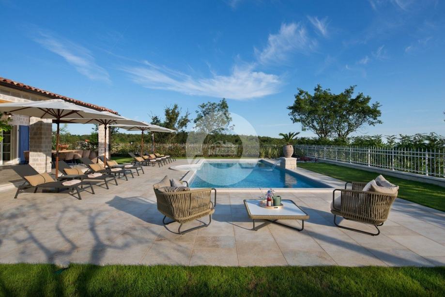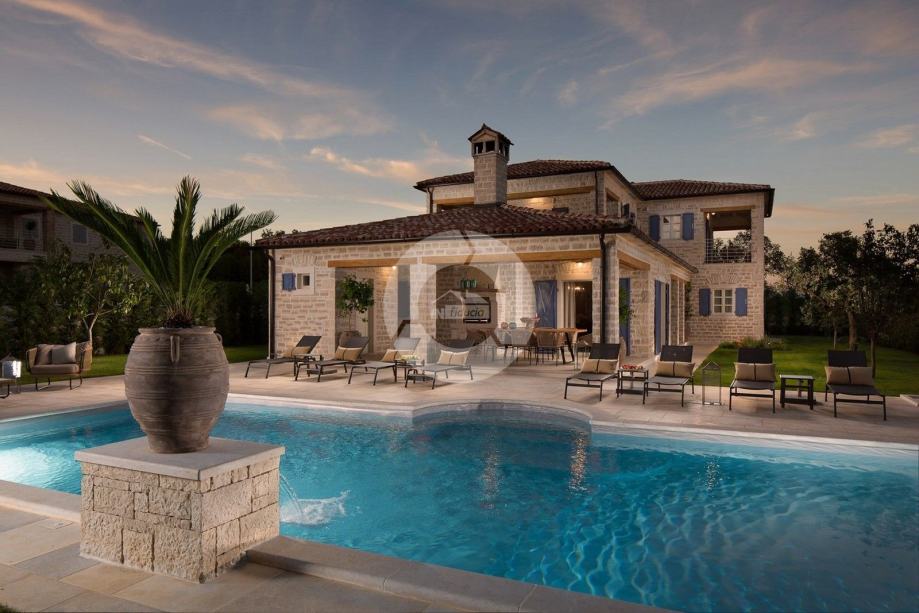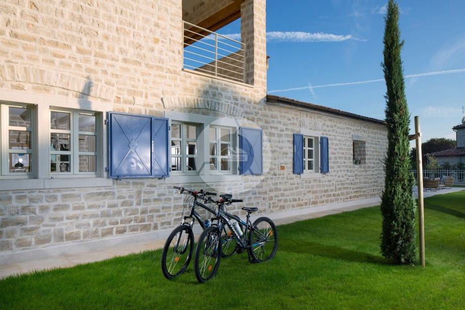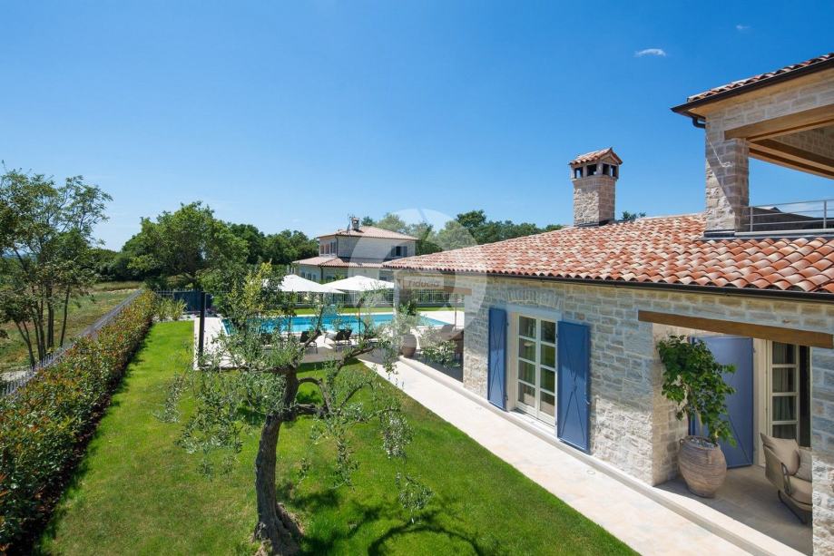 Ova prekrasna vila izgrađena je u sklopu luksuznog projekta s 5810 m2 privatnog zemljišta koje nudi gostima ove 4 vile organski vrt sa sezonskim povrćem, fitnes na otvorenom, 2 teniska terena, 2 bocce terena, kao i igrališta za rukomet, nogomet, košarku i odbojku. Za pravi istarski osjećaj tu su i 3 boskarina, bijelo siva istarska goveda sa dugim rogom, simbolom regije. Elegantna, sofisticirana i vrhunski smještena usred slikovitog istarskog okoliša, a još uvijek nadomak sunčanih plaža i živopisnih primorskih mjesta, Villa nudi luksuzni smještaj u kojem se možete odmah opustiti i uživati u svakoj minuti svog odmora. Prizemlje je u cijelosti posvećeno raskošnom životu, s predivnom dugom prostorijom koja je lukama podijeljena na dnevni boravak i blagovaonicu / kuhinju s francuskim vratima, koja u sebi donose obilje toplog istarskog svjetla. Izložena kamena stolarija, spušteni stropovi i prekrasni otvoreni kamin stvaraju toplu i ugodnu atmosferu, a spoj modernog i vintage namještaja i vrhunske opreme pružaju vam udobnost visoke kvalitete. Tri spavaće sobe raspoređene su na gornjem katu, a dvije su u prizemlju koje se otvaraju izravno u ugodan privatni bazenski bazen, koji predstavlja fantastično mjesto za opuštanje i opuštanje, uključujući ljupki, natkriveni, autentični roštilj sa stolom za blagovanje koji čini prekrasnim odmor od sunca ili savršenog mjesta za uživanje u vašim obrocima na otvorenom. Nikada vam neće nedostajati stvari koje trebate posjetiti i mjesta koja ćete posjetiti, čineći ovu prekrasnu vilu odličnom bazom za svoj istarski izlet.