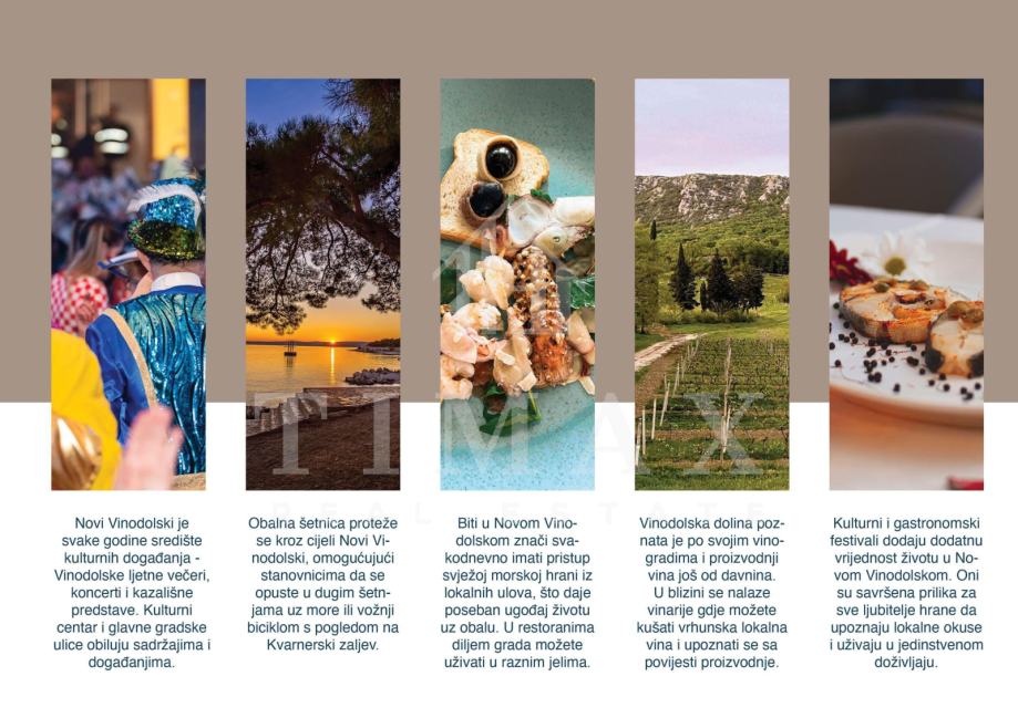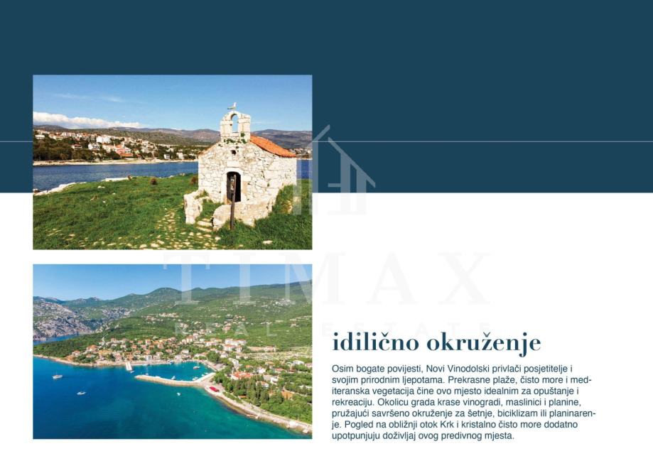 Ovaj moderan kompleks, okružen zelenilom i blagim brežuljcima, nudi mirno i ugodno okruženje, a projektiran je kako bi zadovoljio najviše standarde stanovanja na lokaciji u srcu Primorsko-goranske županije koja ga čini savršenim mjestom za one koji žele spojiti praktičnost i udobnost s prirodnim ljepotama. Blizina povijesne gradske jezgre, restorana i plaža čini ovu lokaciju praktičnom za svakodnevni život i savršenom za odmor, a smještaj uz glavne prometne pravce stanarima će omogućiti lagan pristup Jadranskoj magistrali, zračnoj luci na otoku Krku te obližnjim gradovima poput Crikvenice, Senja i Rijeke.