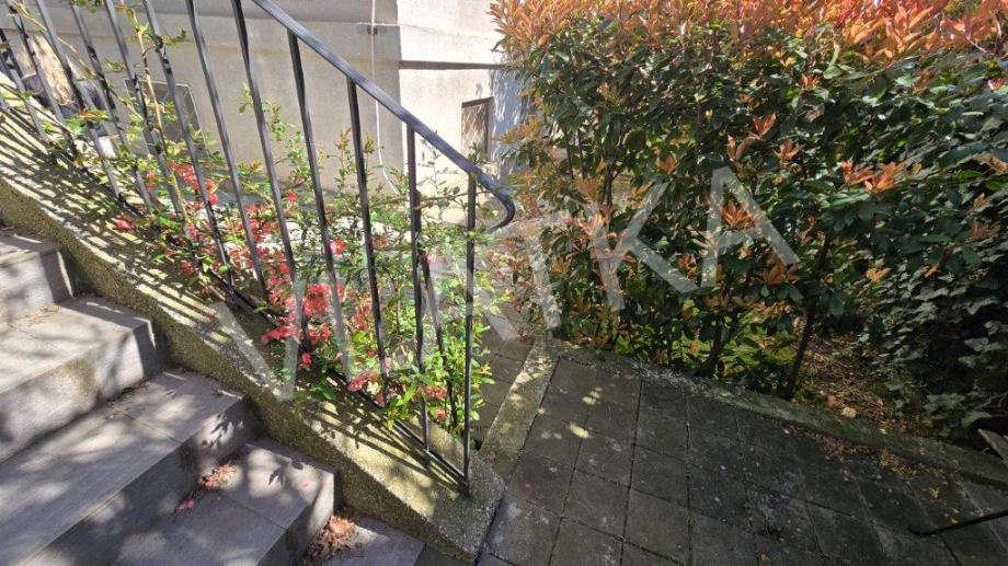 Stan je okružen zelenilom, zaštićen od glavne prometnice, s velikom krovnom terasom i vrtom (80m2).
